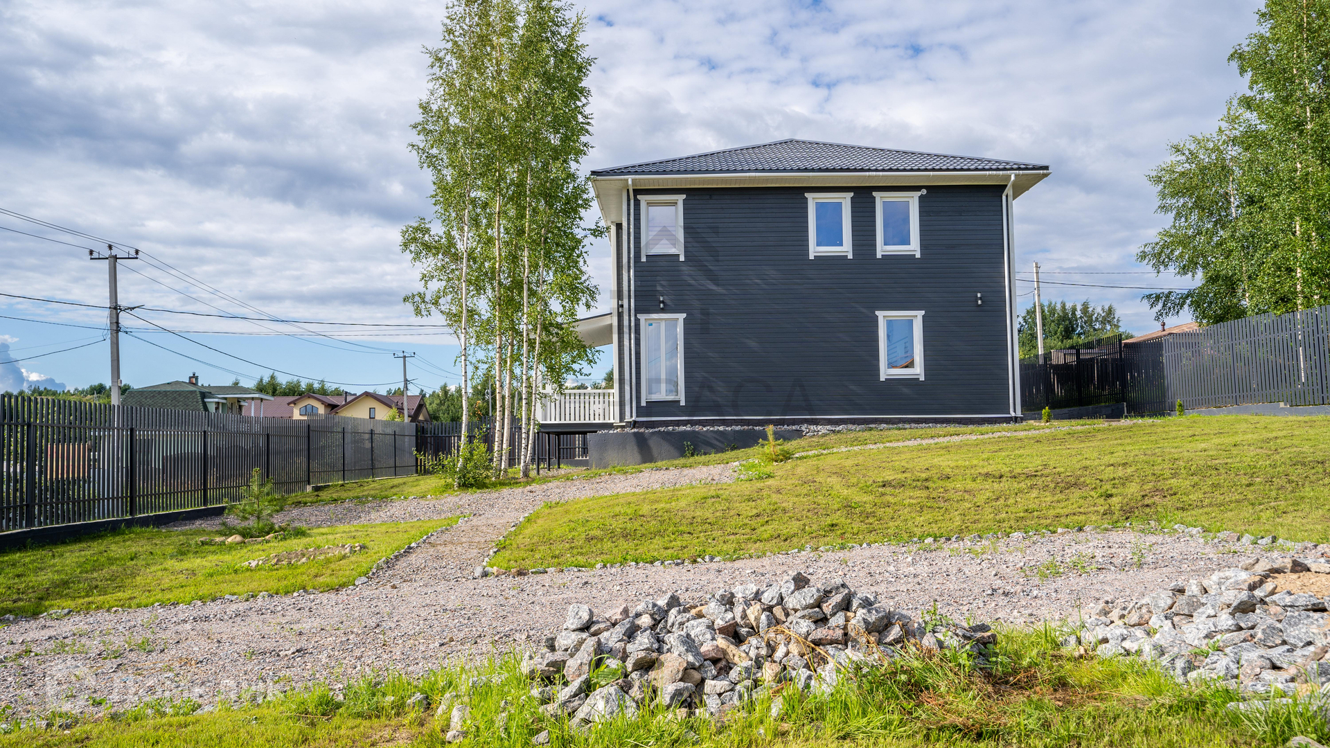 Имеется мощение дорожек и площадки вокруг дома мелким гравием.