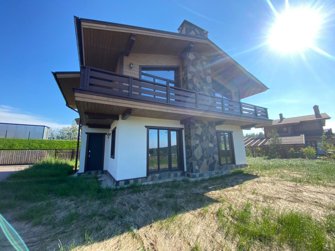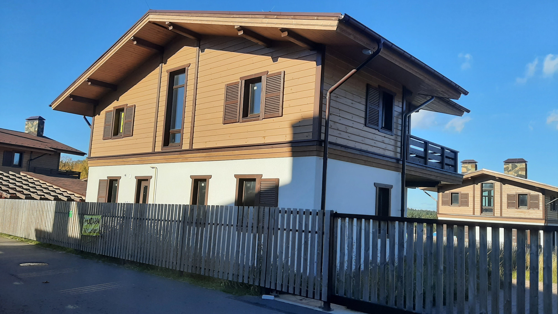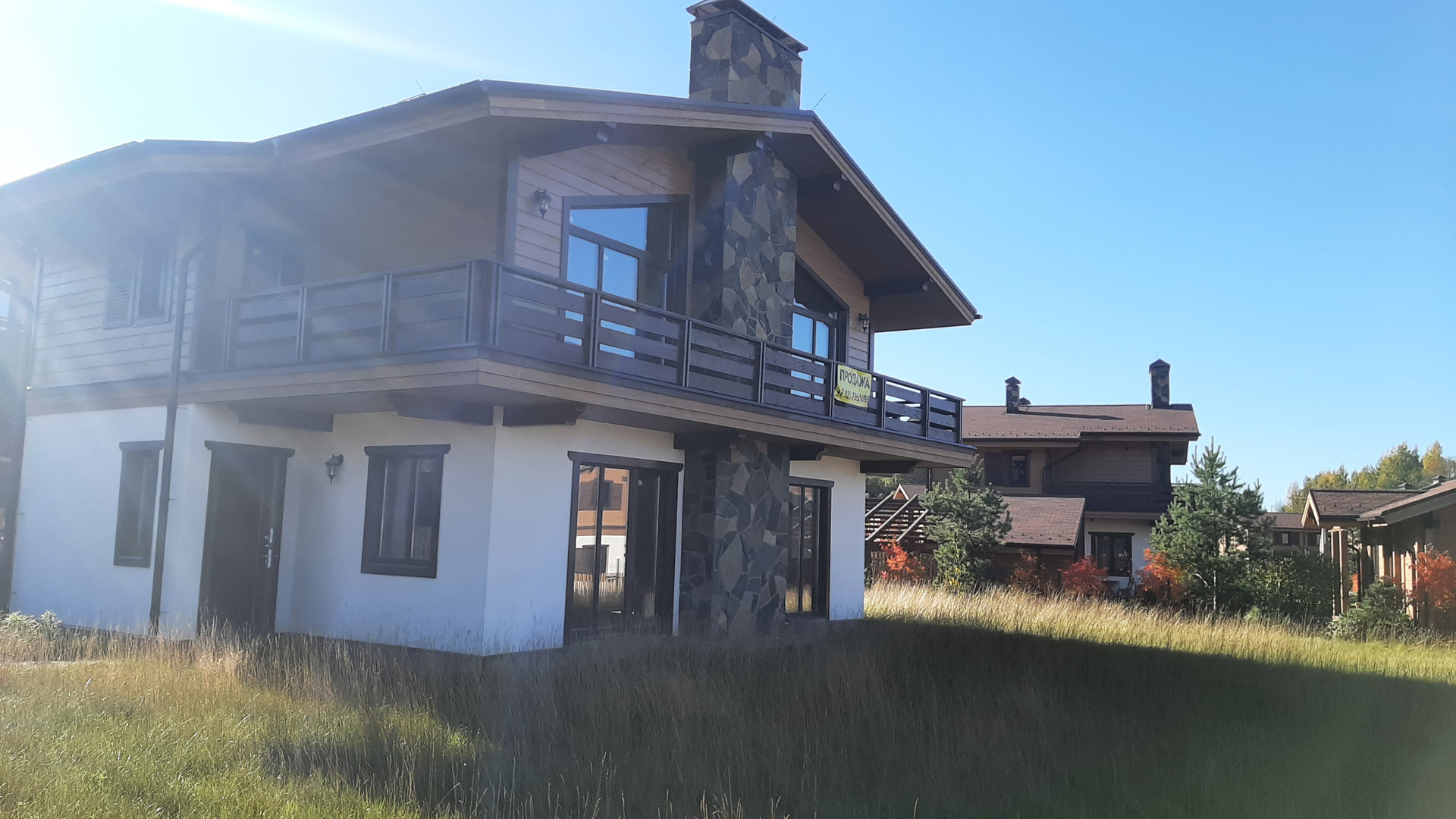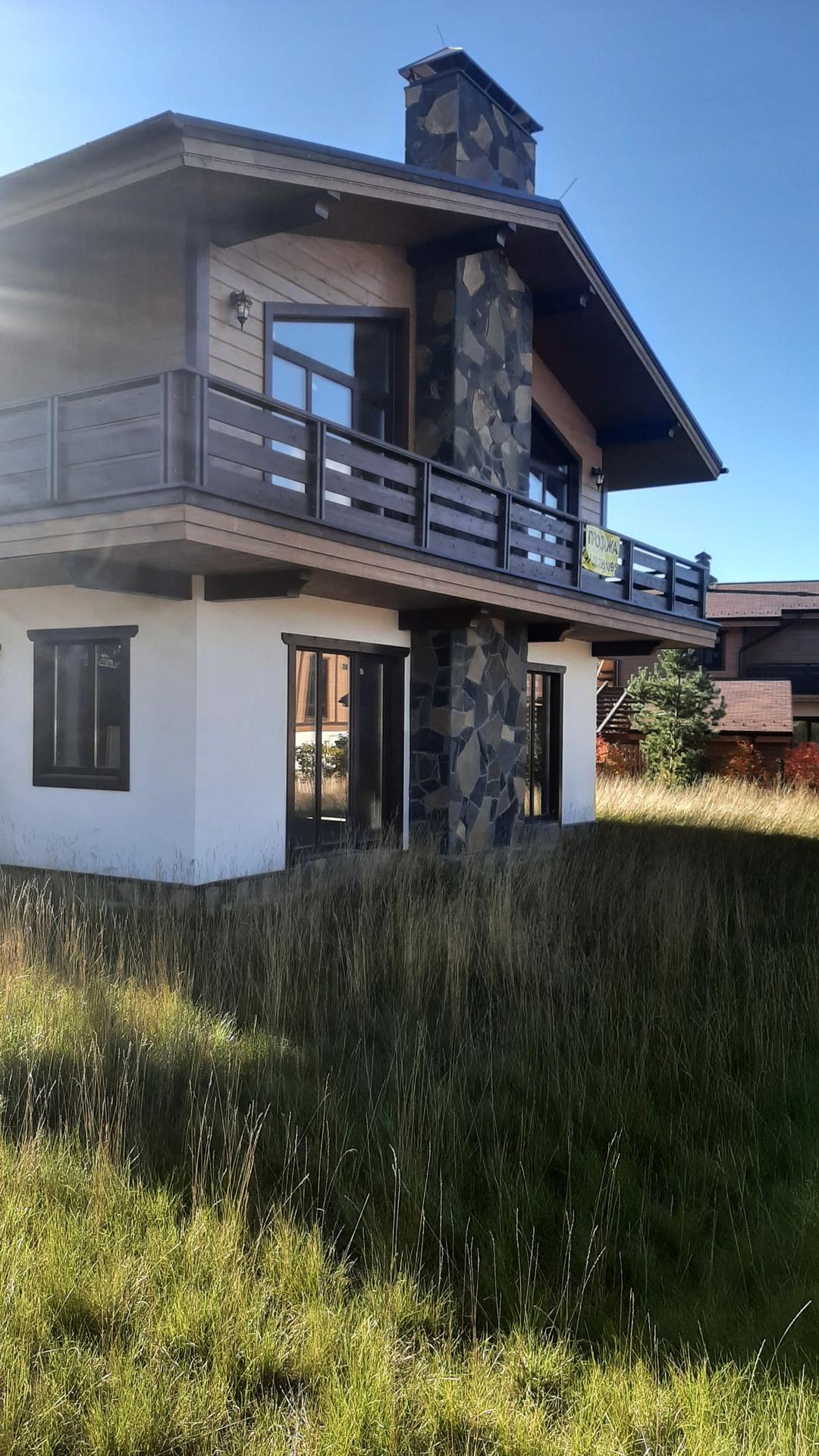В продаже 2х этажный дом площадью 176 м.кв. в закрытом курортном поселке Горная деревня(в 10-ти минутах пешком от знаменитого горнолыжного  курорта Охта парк). Стены-кирпич, крыша-гибкая черепица,облицовка-силиконовая штукатурка. Дымоход и цоколь облицованы натуральным камнем.Планировка свободная,на втором этаже терраса с видом на просторы поселка.