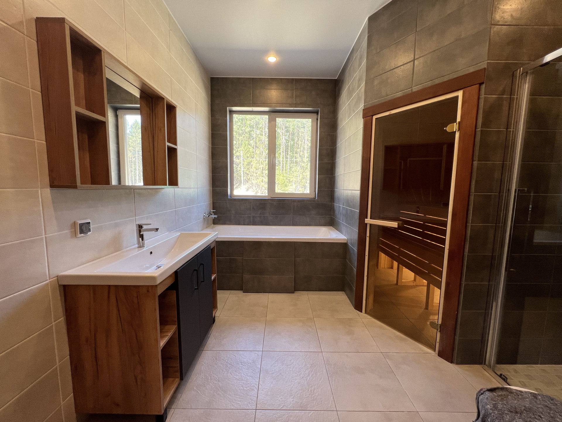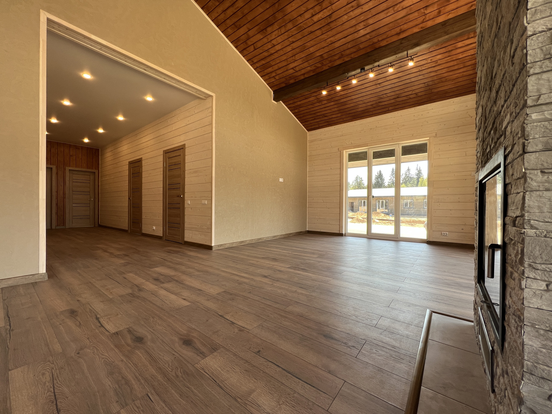 Просторная зона гостиной-кухни-столовой, 4 спальни, 2 санузла, камин, сауна, гардеробная, шикарная терраса, панорамные окна