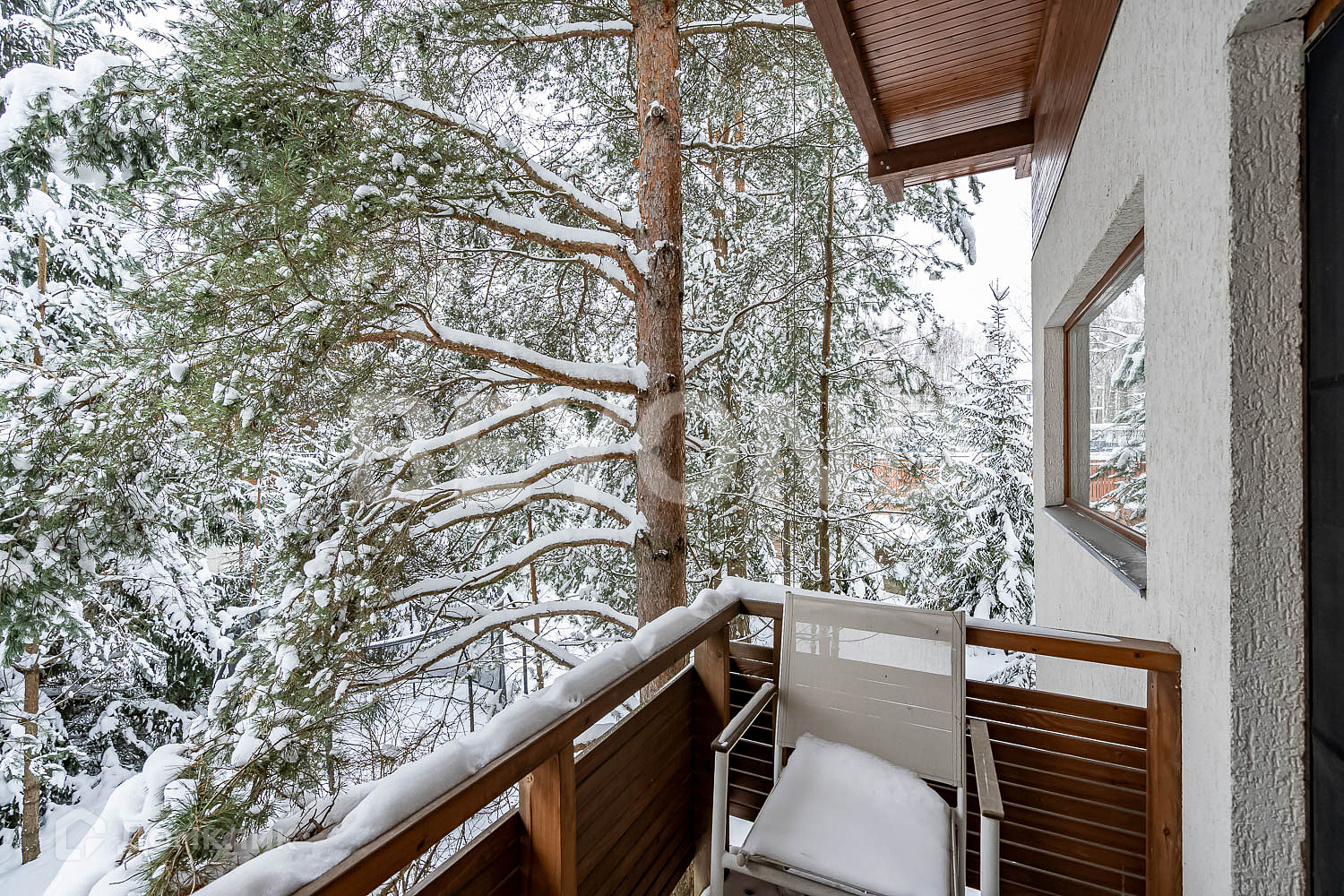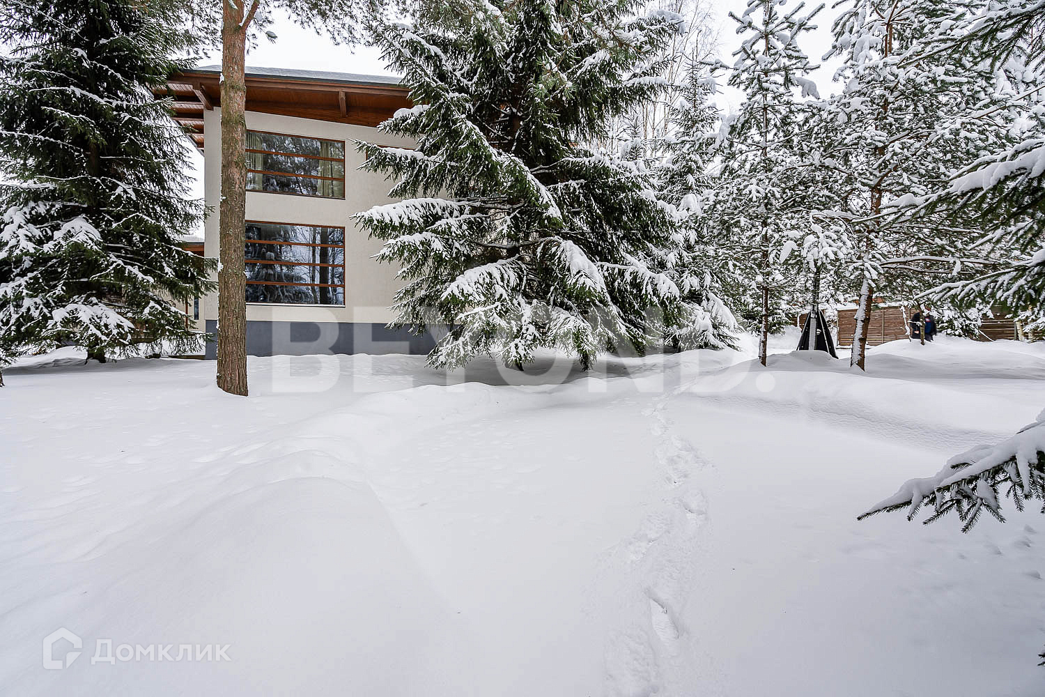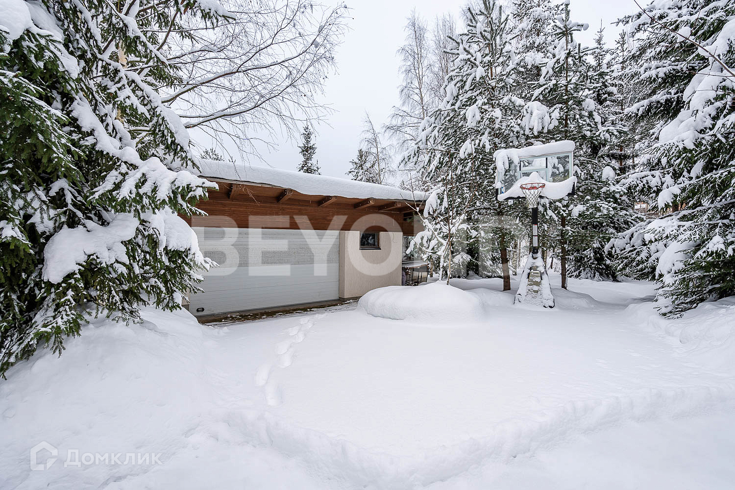 На участке сохранены величественные ели, сделана подсветка всей территории, есть прямой вход к озеру. Идеальное сочетание уединения и гармонии. Также при въезде на участок построен гараж на два машино-места с комнатой для персонала.