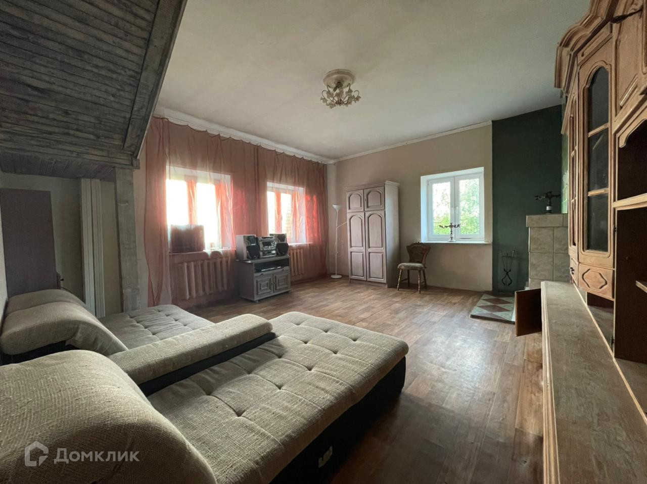 1 этаж: большая кухня - столовая, гостиная с действующим камином, комната, санузел с душем, большой холл.
