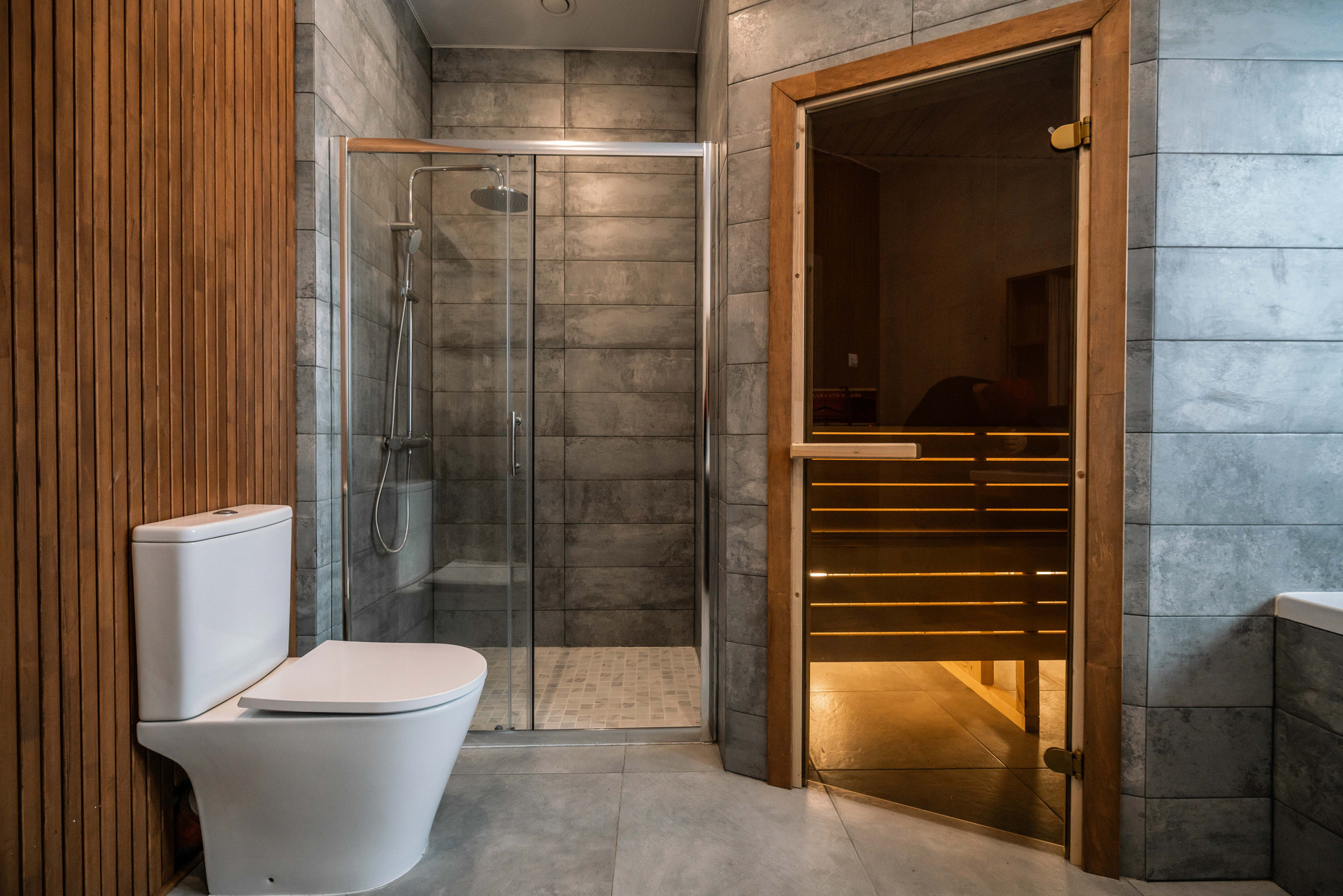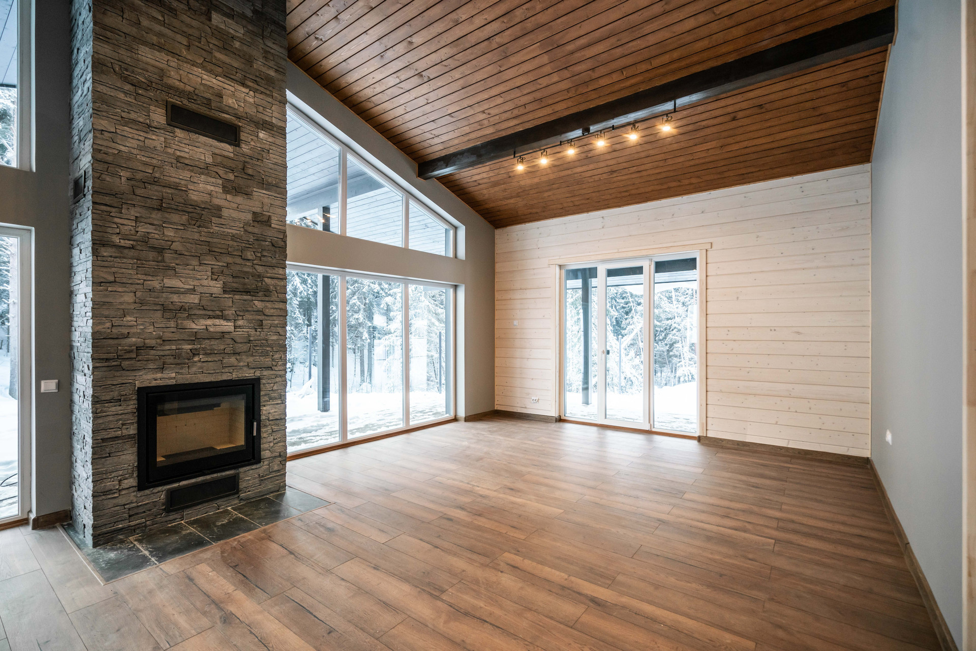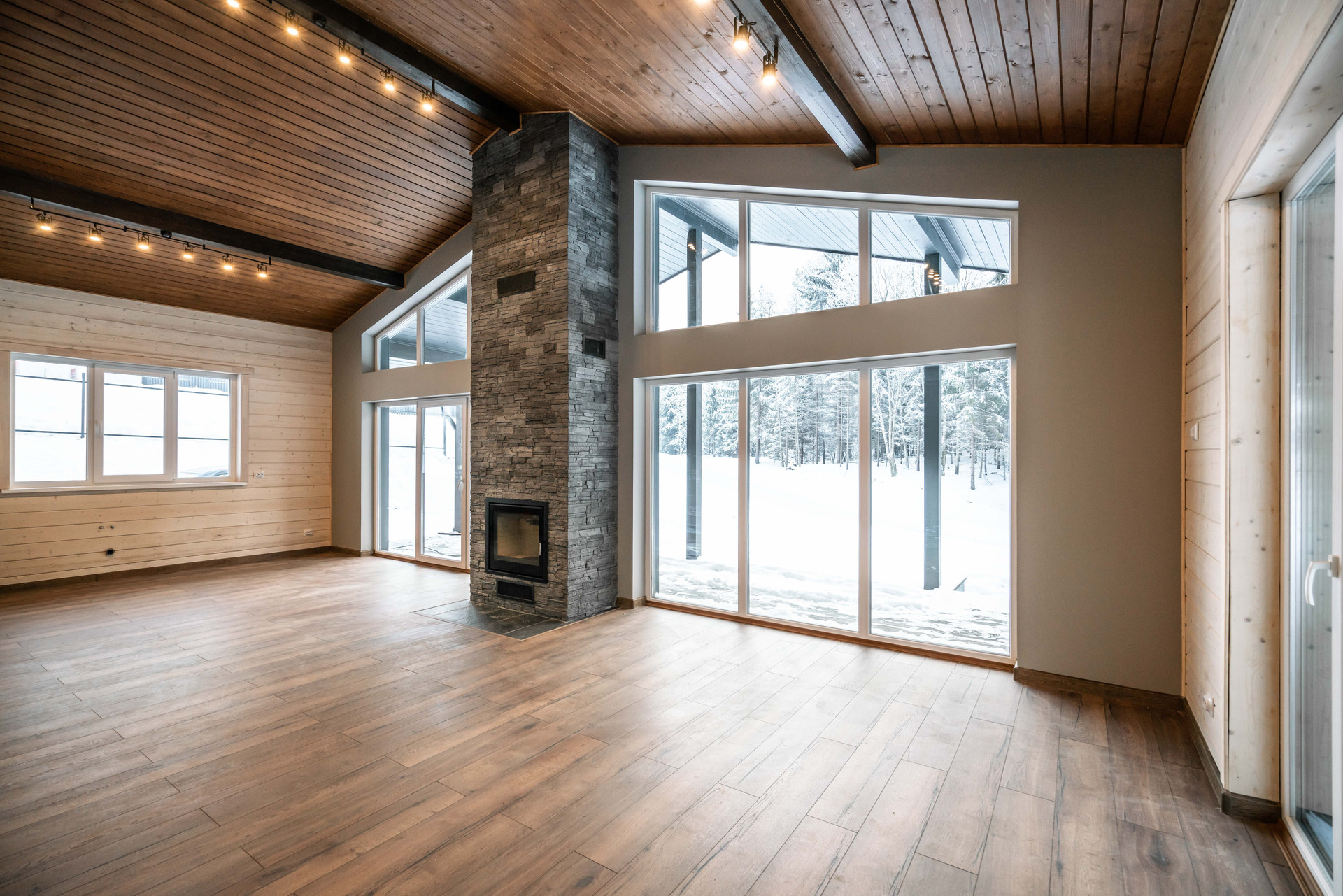 Просторная зона гостиной-кухни-столовой, 3 спальни, 2 санузла, прачечная, камин, сауна, гардеробная, шикарная терраса, панорамные окна