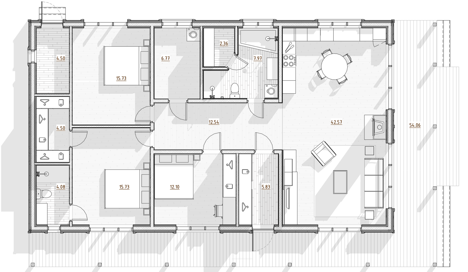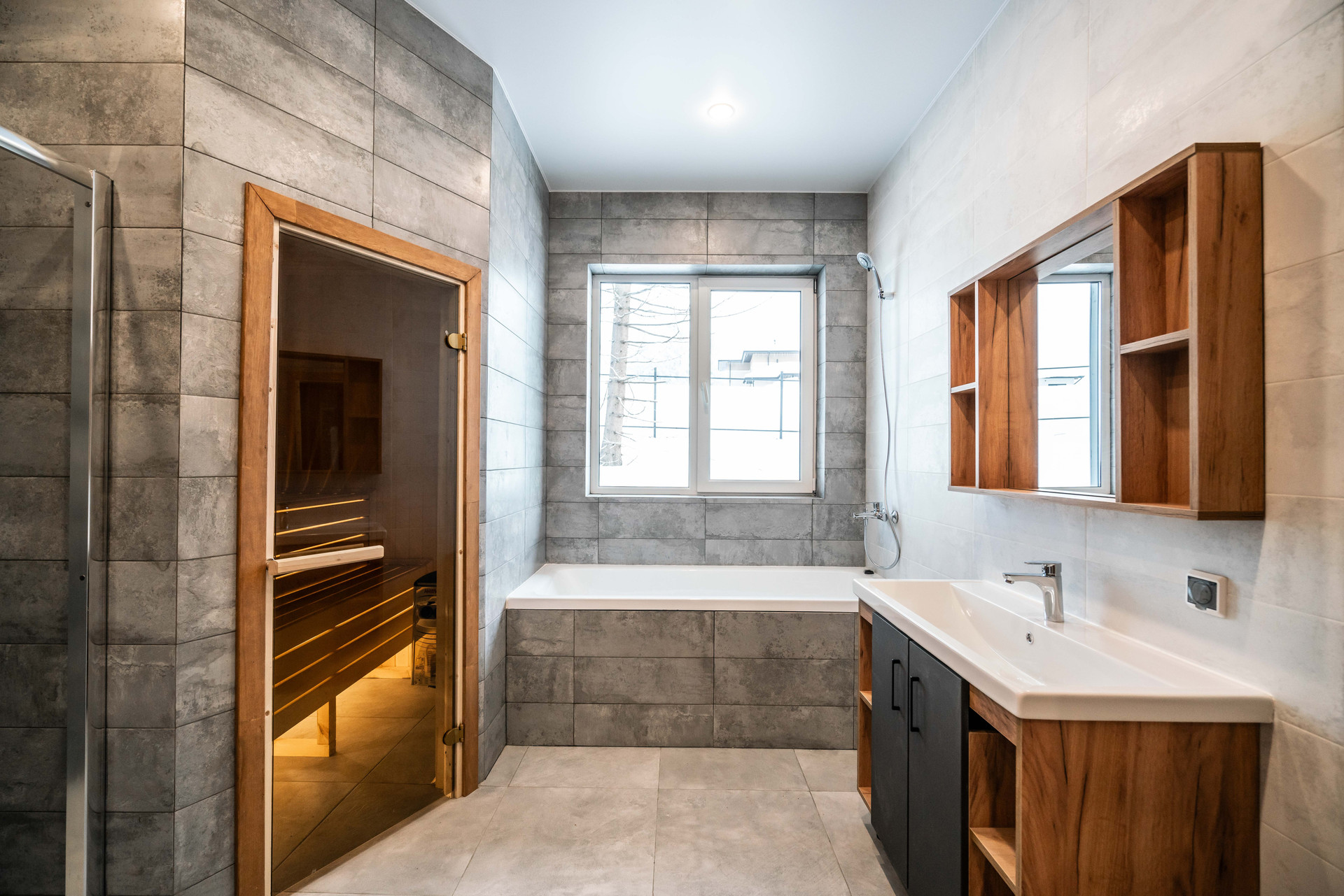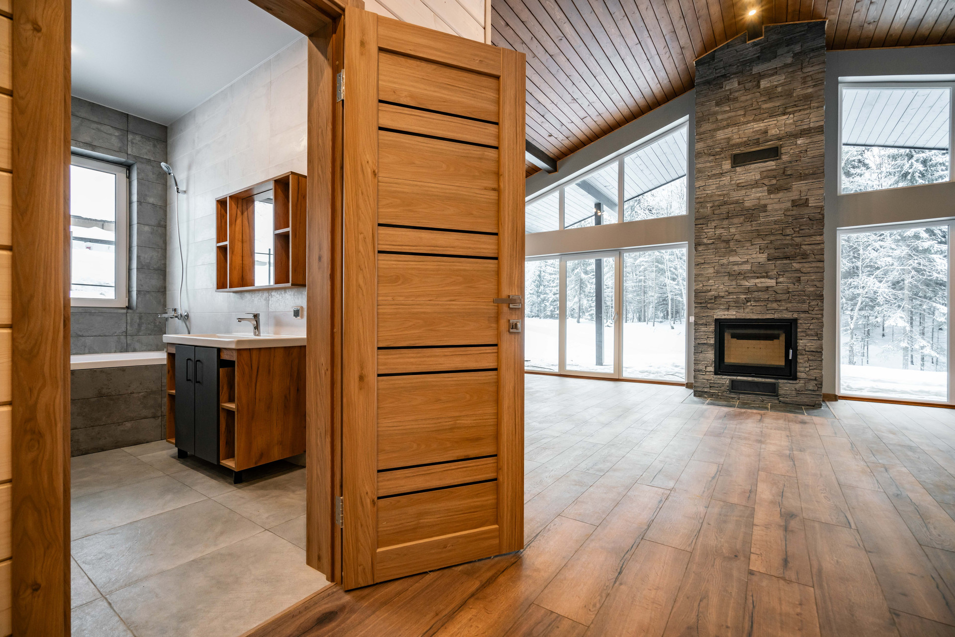 Просторная зона гостиной-кухни-столовой, 3 спальни, 2 санузла, прачечная, камин, сауна, гардеробная, шикарная терраса, панорамные окна