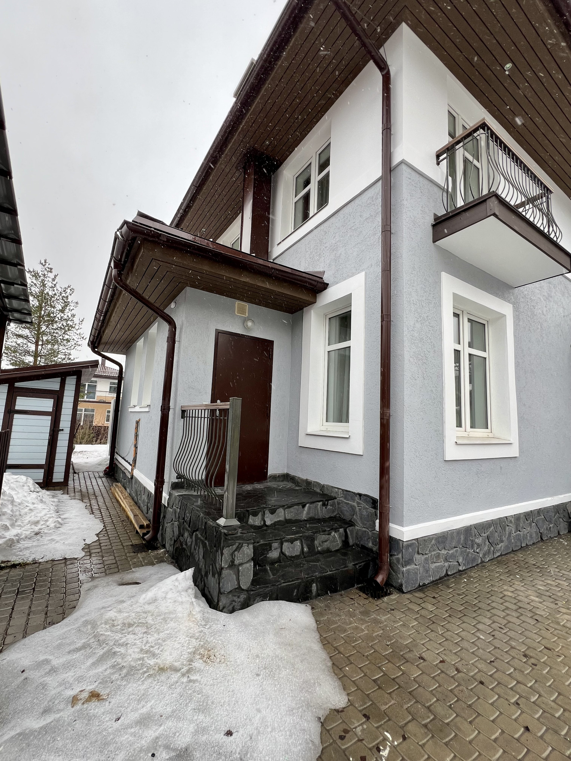 - крыльцо и нижняя часть дома выложена из натурального камня;