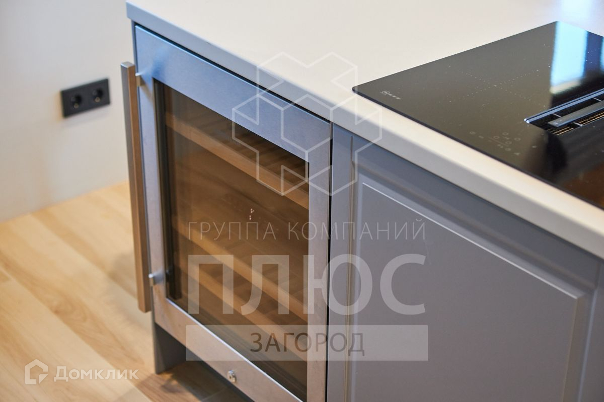 Кухонная зона оборудована современной встраиваемой бытовой техникой, духовкой, холодильником, морозильной камерой хранения, варочной индукционной панелью со встроенной вытяжкой, винным шкафом.
