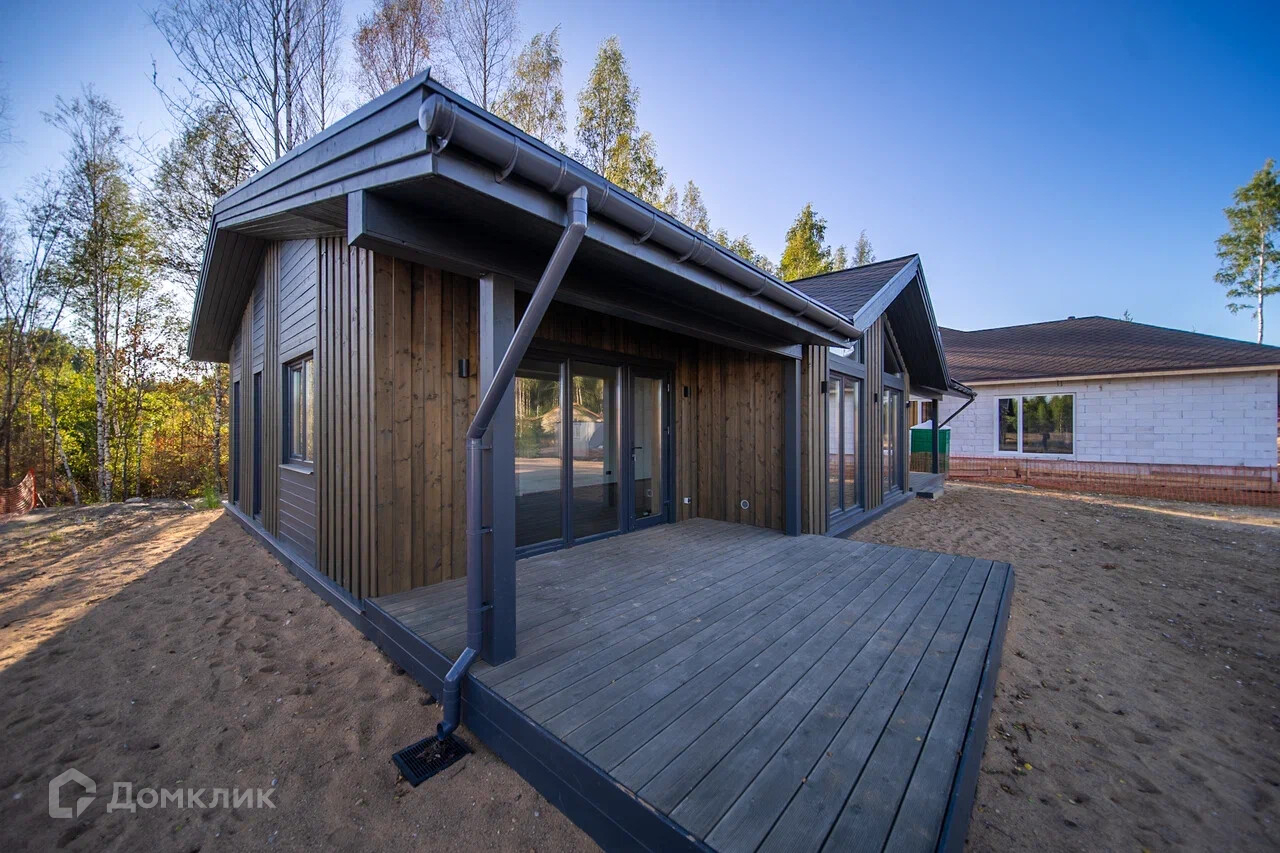 -Дом расположен в коттеджном посёлке бизнес-класса «Охтинское раздолье» в посёлке Мистолово.