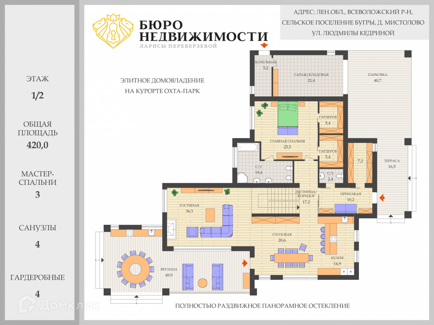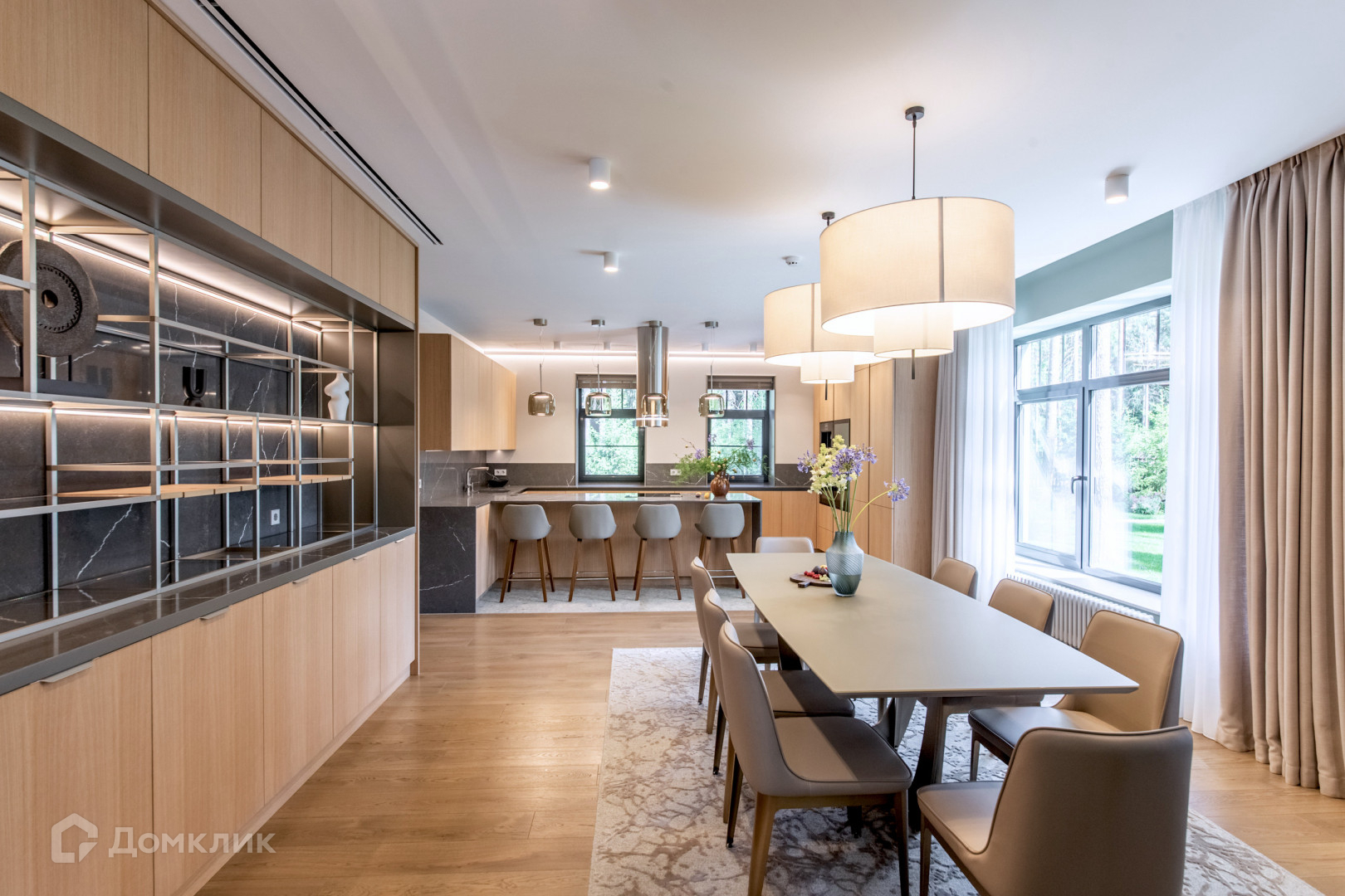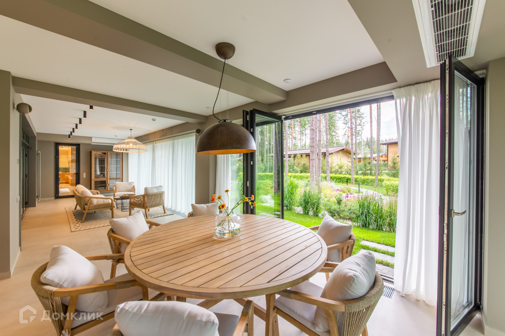 - Двухсветная гостиная и столовая с выходом на шикарную просторную террасу,