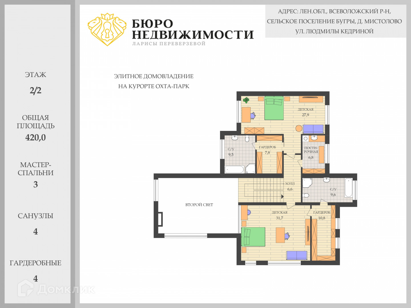 Элитное домовладение с премиальной отделкой на самом лучшем курорте г. Санкт-Петербург, полностью готовое к проживанию. Кирпичный двухуровневый особняк, площадью 420 м2