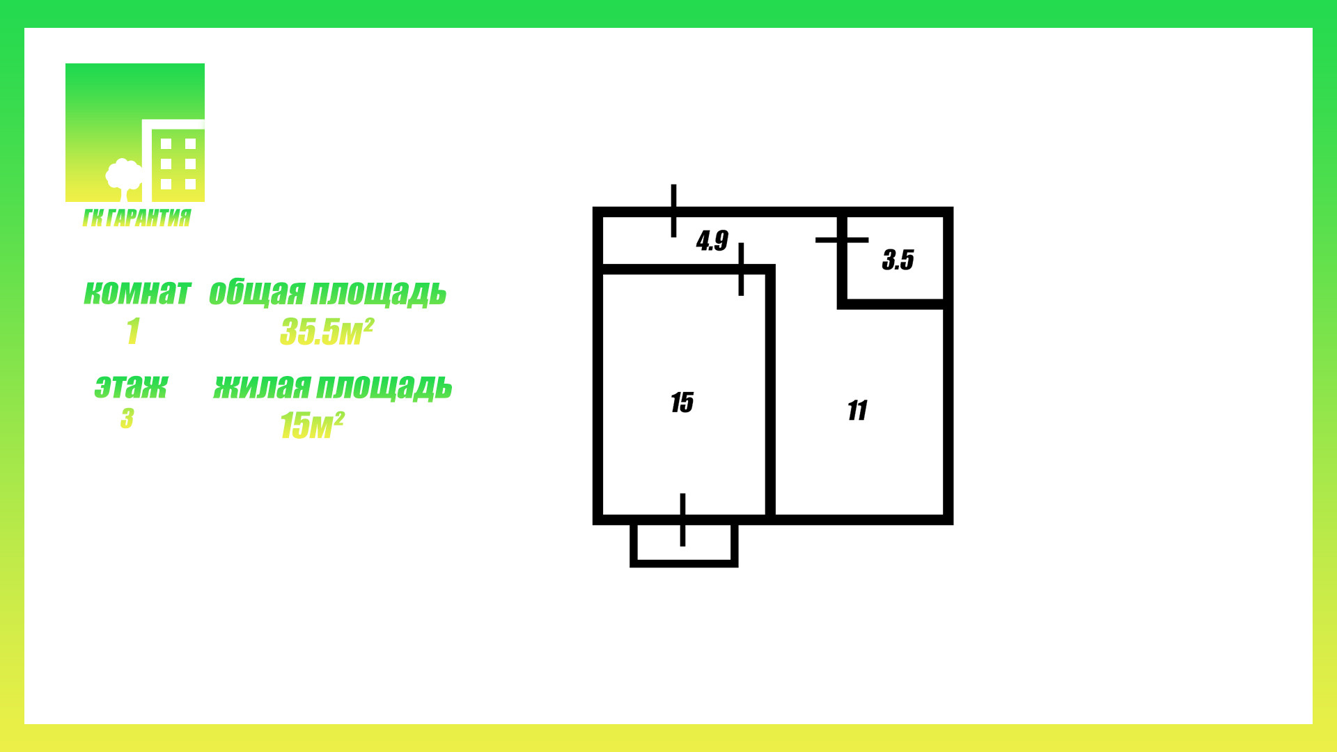 Общая площадь 35.5 м2