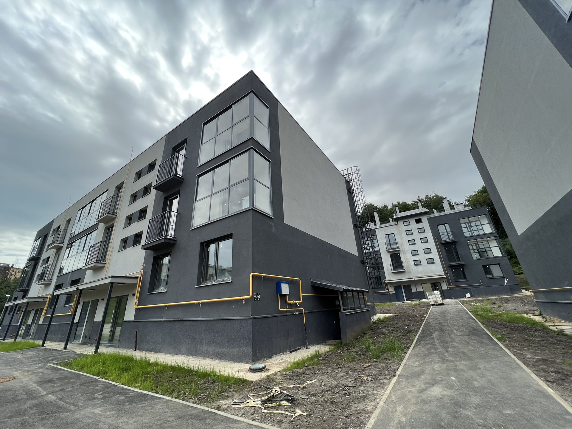 Малоэтажный и малоквартирный,  монолит, ж/б конструкция, стены -газобетонные блоки с устройством монолитного пояса.  В комплексе закрытая территория, въезд через пункт охраны. Загородный жилой комплекс Близкое  это мультиформатный посёлок, в проекте представлены квартиры, таунхаусы и коттеджи. Он расположен действительно близко  всего в 7 км от КАД, в поселке Мистолово во Всеволожском районе Ленинградской области.