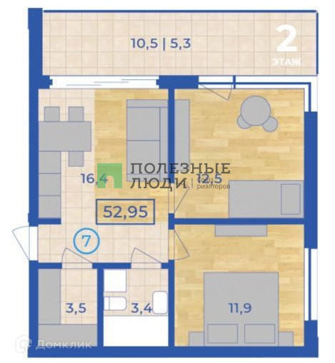 + Общая площадь квартиры 53 кв.м