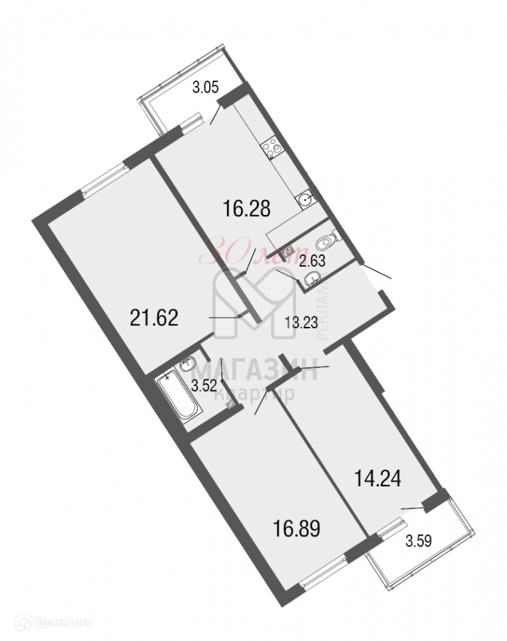 Количество комнат 3