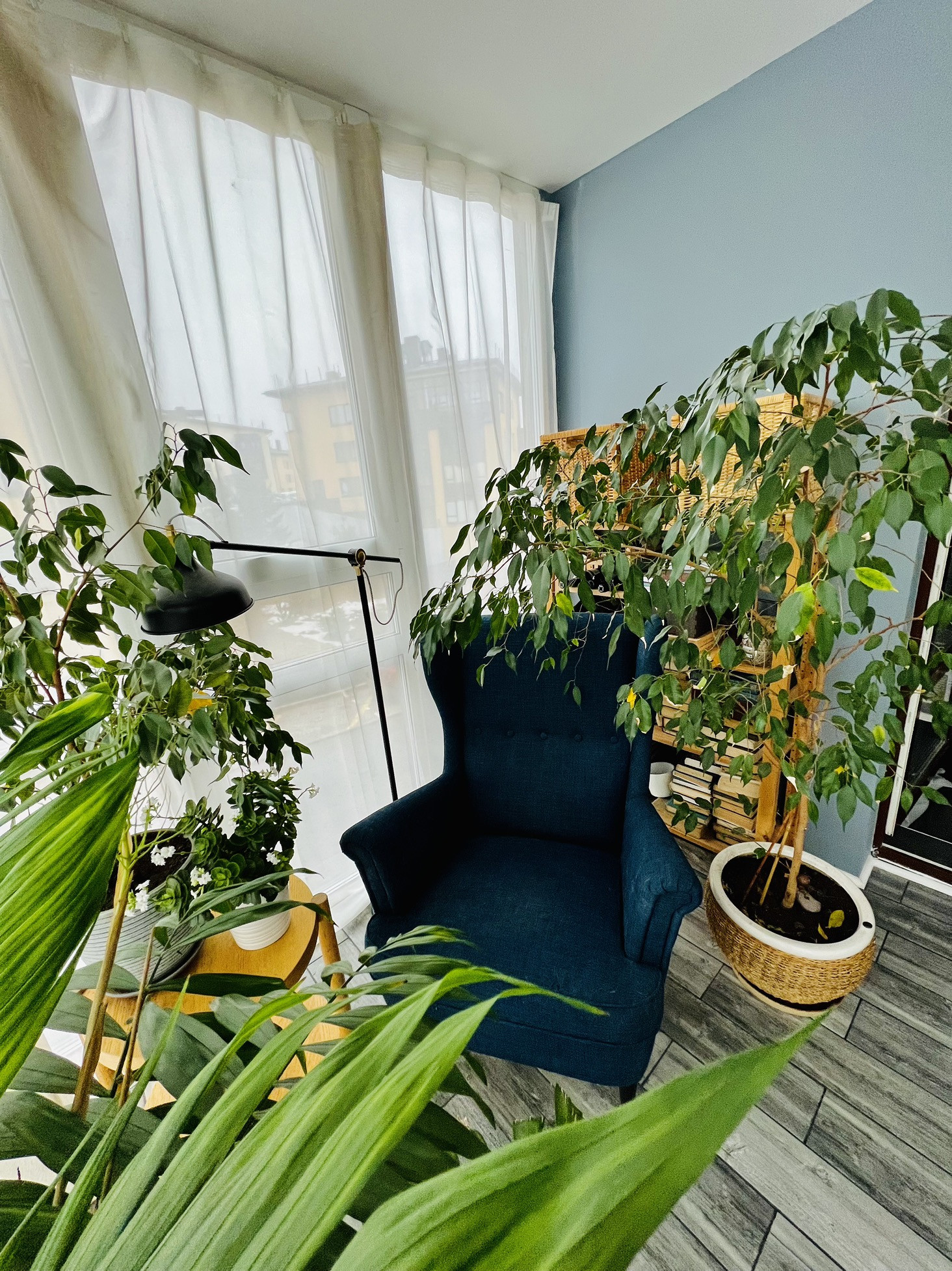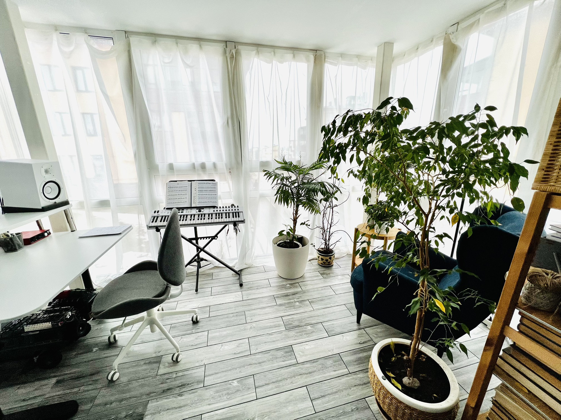 И большая лоджия-зимний сад. По факту отдельная комната 9,5 кв м. Сделано двойное зимнее остекление, теплый пол, полная отделка. Можно использовать как кабинет или как зимний сад для отдыха и релакса после рабочего дня.