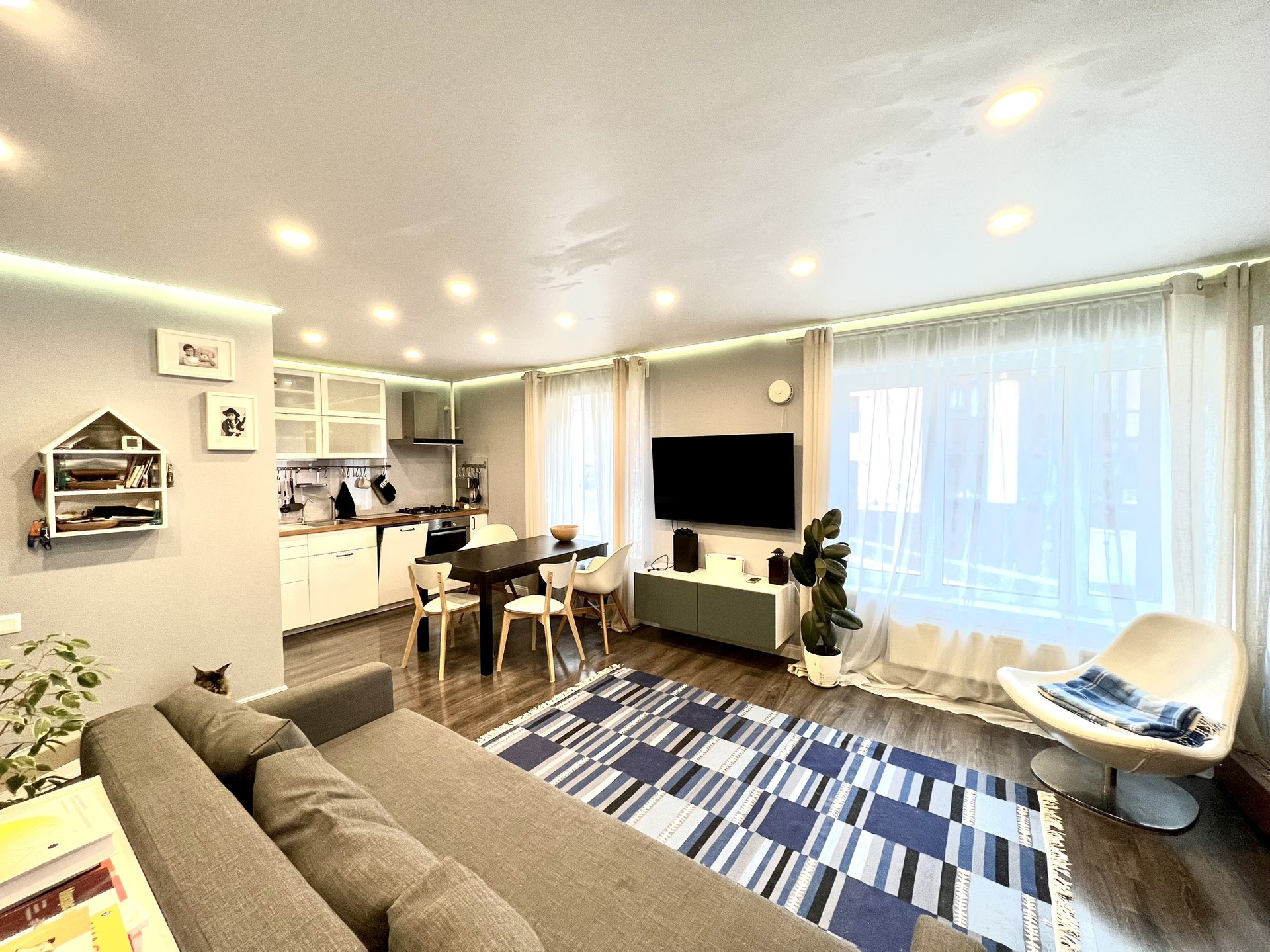 Просторная кухня-гостиная 33 кв.м с двумя окнами.