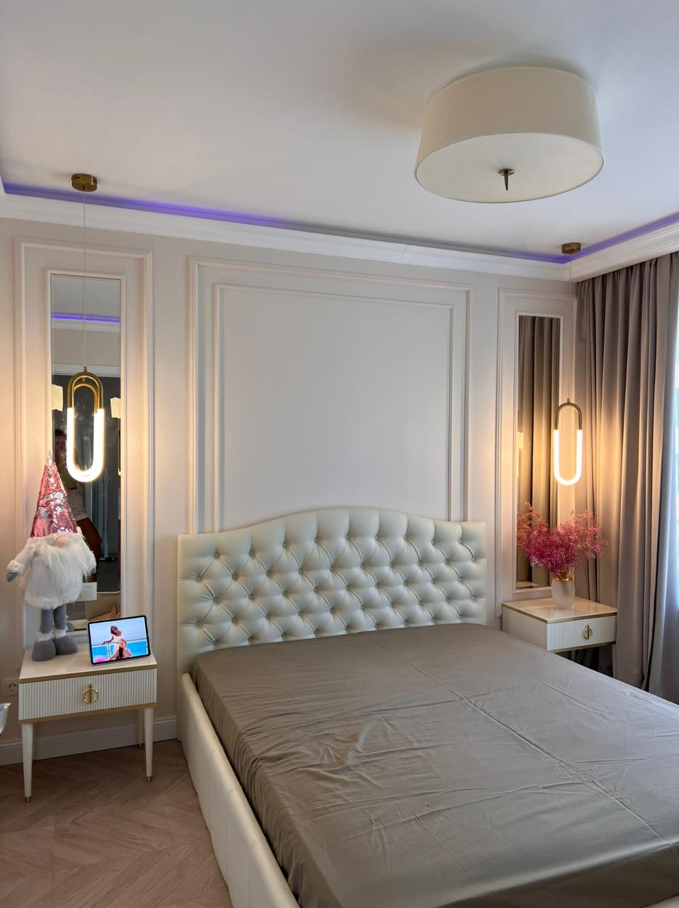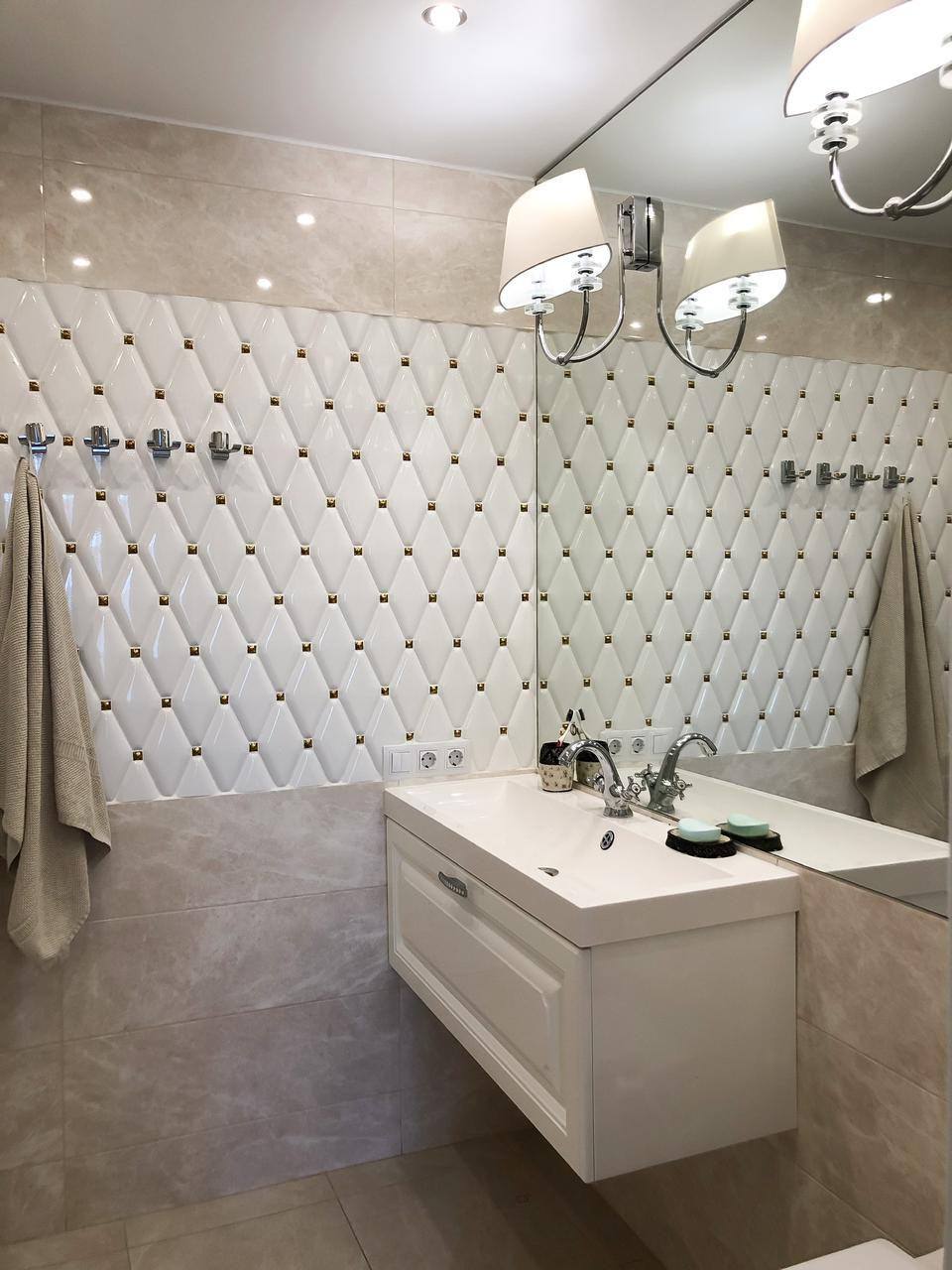 В квартире выполнен дизайнерский ремонт из высококачественных материалов. Высота потолков 2.70 м. Большой утепленный балкон 13.2 кв.м.  с теплыми полами, где находится детская комната. Теплые полы в ванной комнате и в туалете. В ванной комнате находится ванная. В туалете душевая кабина.