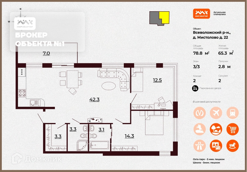 В двухстороннем АПАРТАМЕНТЕ площадью 78,8 кв.м выполнена ПОЛНАЯ ПРЕДЧИСТОВАЯ ОТДЕЛКА. Отличная планировка - просторная кухня-гостиная 41 кв.м имеет выход на террасу площадью 7 кв.м с видом на Горную деревню и курорт. Кроме того, в апартаменте предусмотрены 2 спальни, 2 гардеробных, 2 совмещенных с/у. Панорамное остекление (окна в пол) создает ощущение единства, света и бескрайнего неба! Для истинных ценителей романтики - встречайте волшебный рассвет и провожайте незабываемый закат!