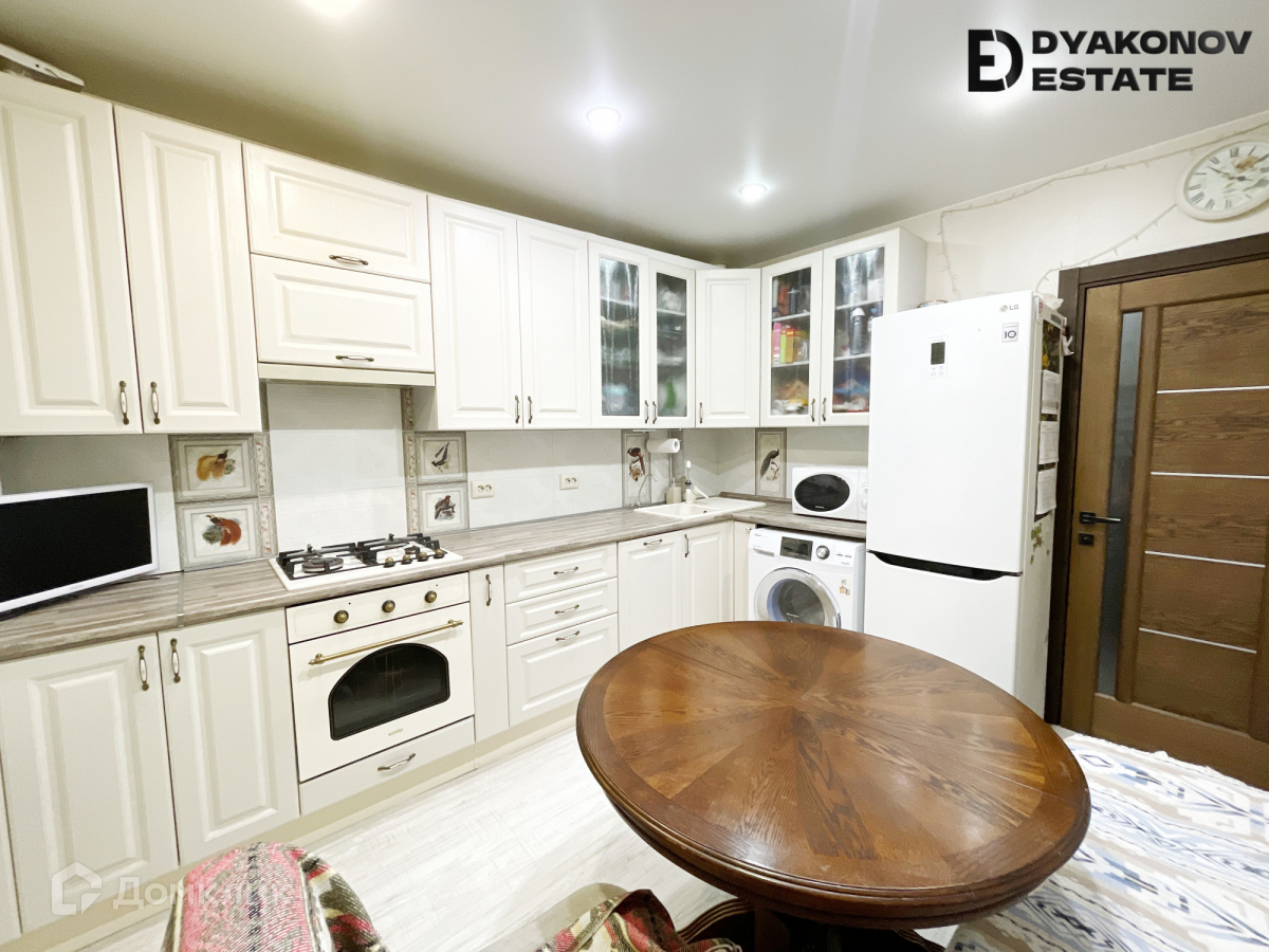 Установлена кухня со всей необходимой бытовой техникой, включая посудомоечную машину.