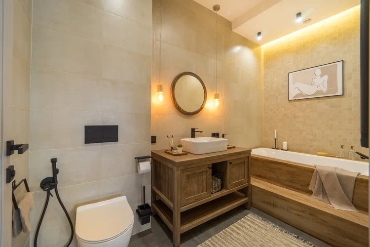 - Санузел с душем, раковиной, туалетом