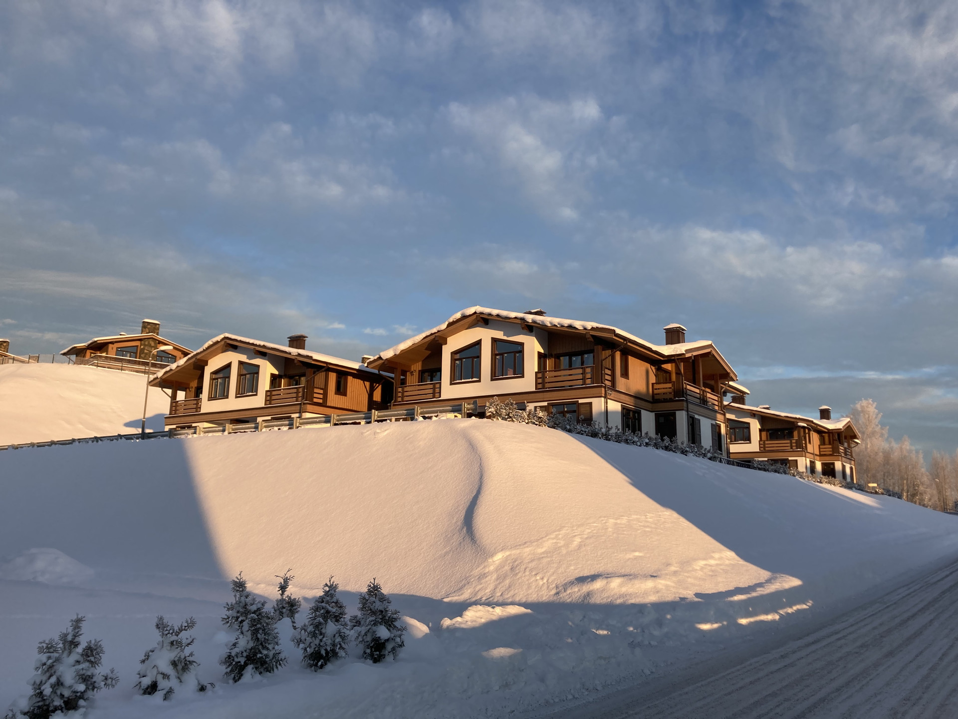 В двух шагах - популярный курорт Охта Парк: 10 горнолыжных трасс, оборудованных подъемниками, чудесный лесной каток, кафе и рестораны, бассейны под открытым небом и банный комплекс, детский клуб Индиго, веревочный парк, рыбалка и многое другое. Для детей круглогодично работает горнолыжная школа, организуются летние спортивные программы. Возводится суперсовременный СПА-комплекс.