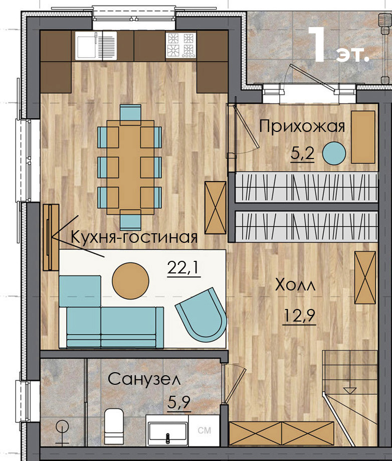 Общая площадь 97.7 м2