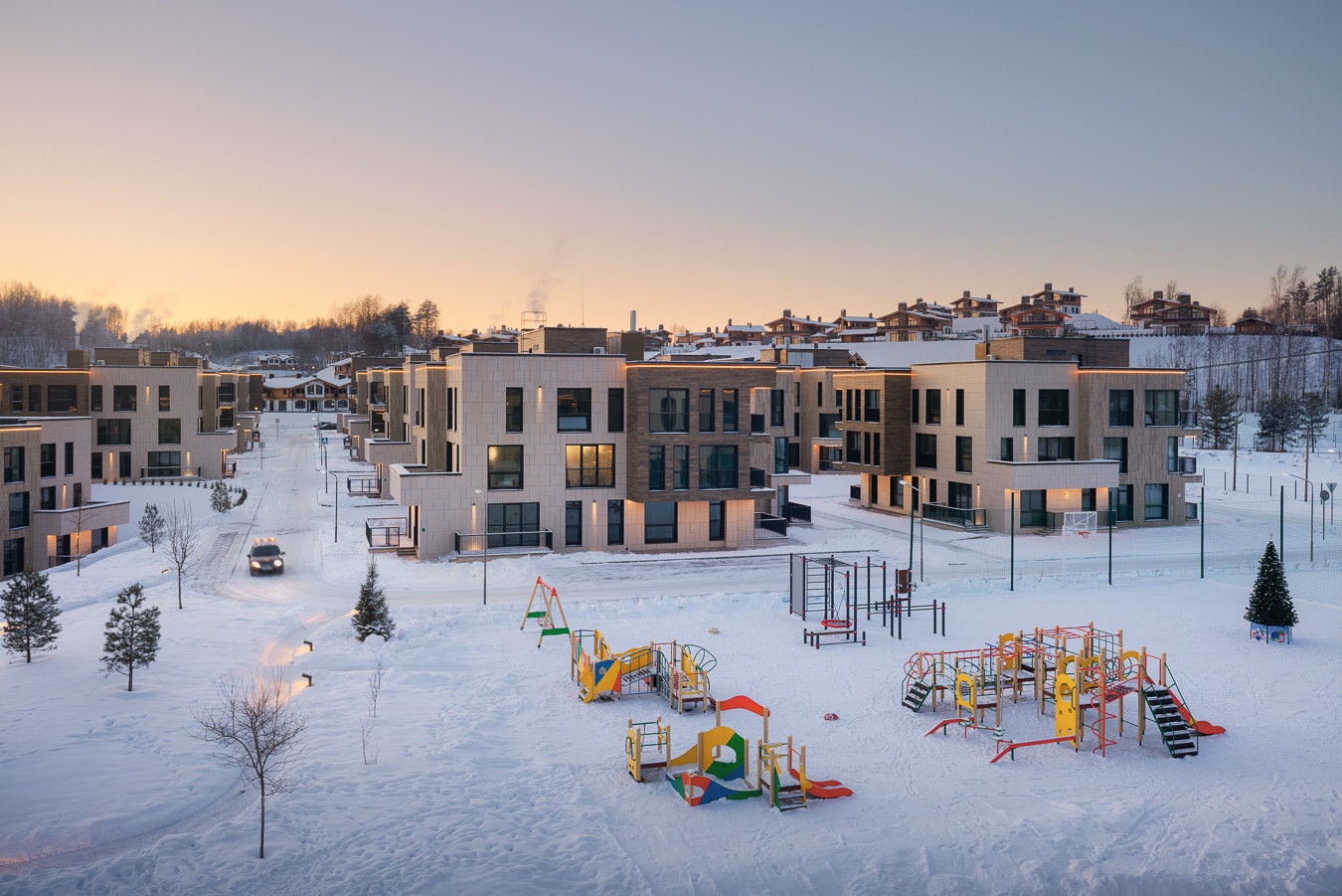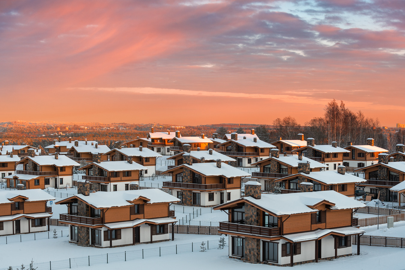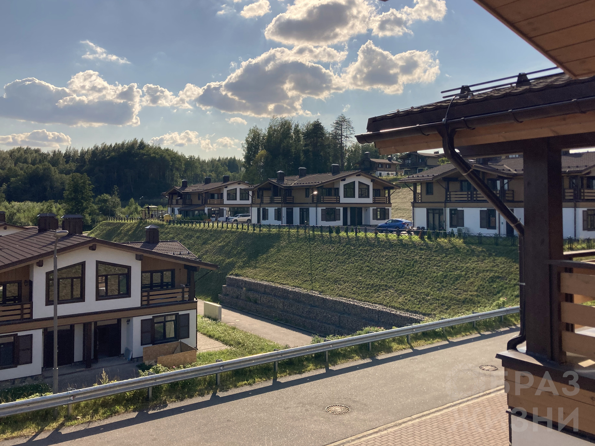 Видовой таунхаус  в стиле шале расположен на естественной возвышенности коттеджного поселка Горная деревня на территории одного из самых популярных курортов Ленинградской области - Охта Парк.