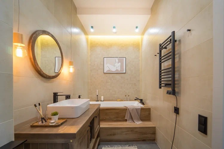 - Санузел с ванной, раковиной, туалетом