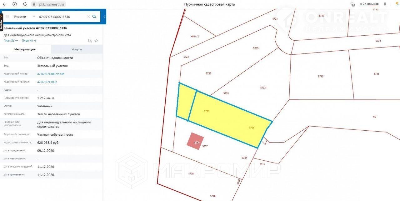 Кадастровый номер участка: 47:07:0713002:5736.