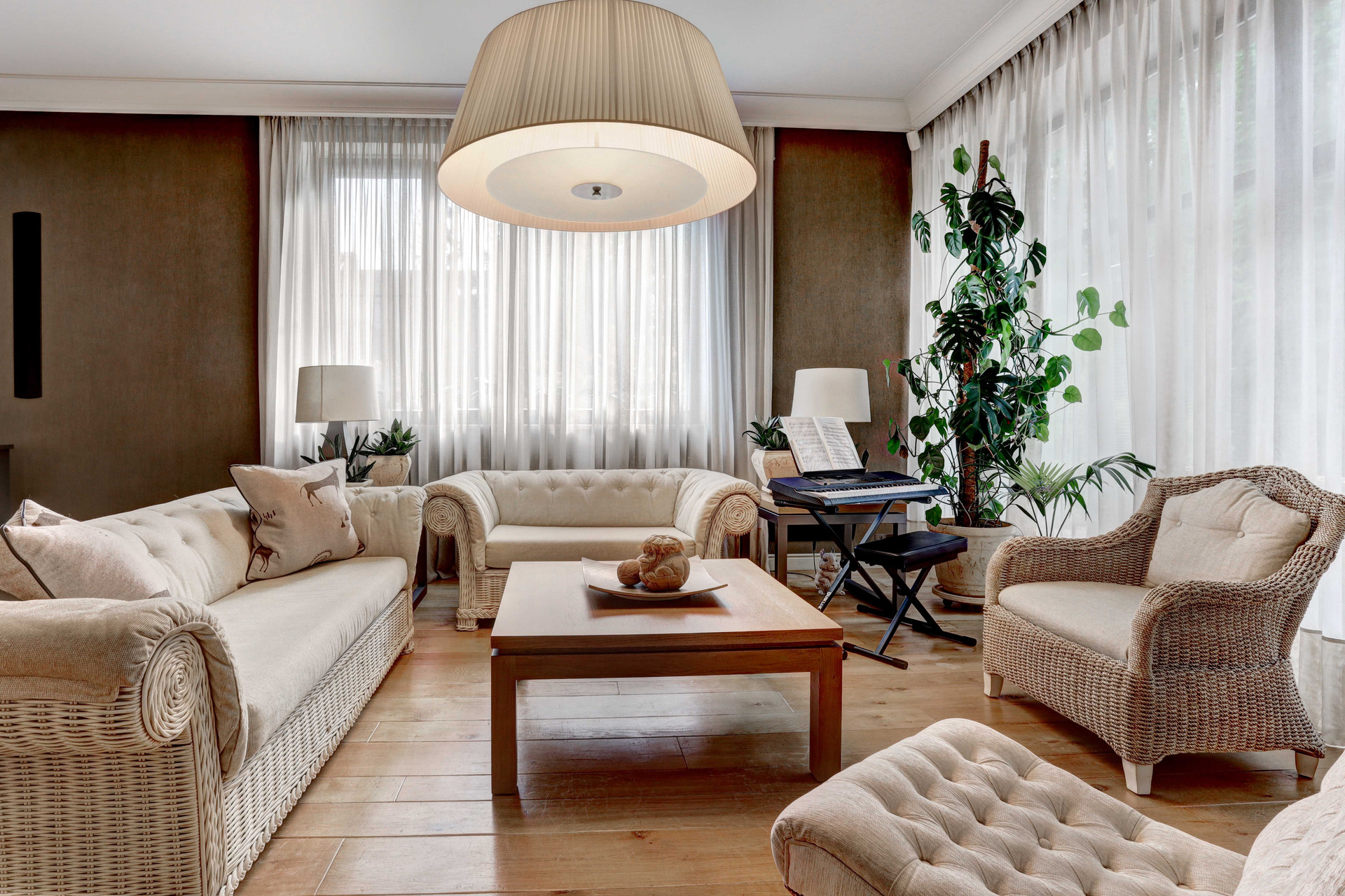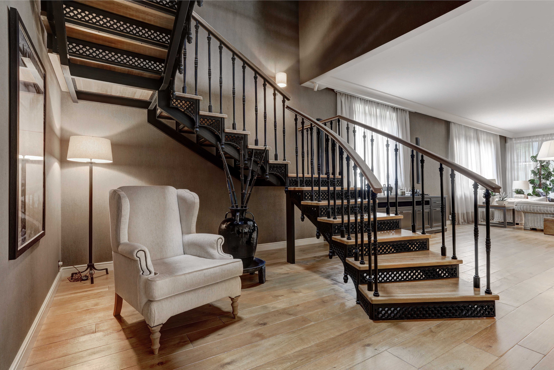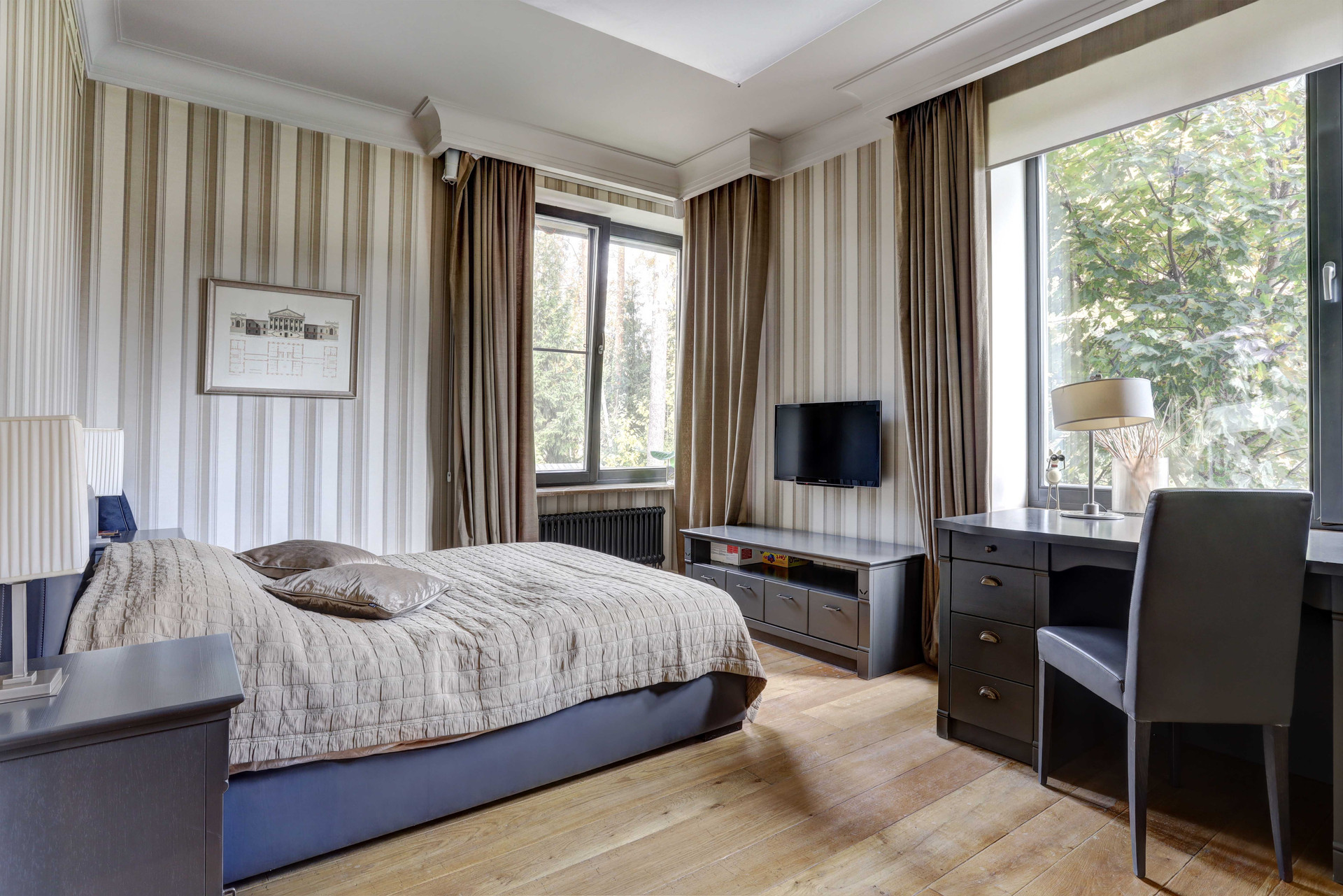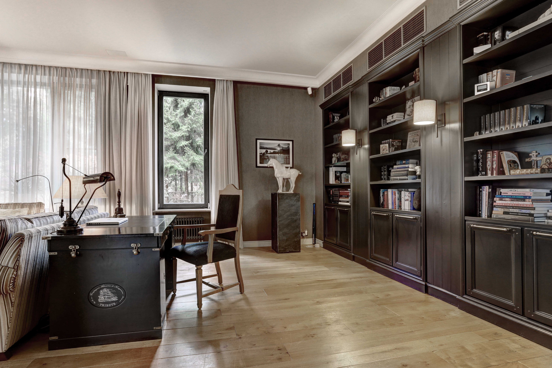 Дорогая дизайнерская мебель и предметы внутреннего декора, дорогая отделка, дорогая техника и инженерные сети. Высокие потолки. В доме имеется бесшумный лифт ANELCO, встроенный пылесос Beam Electrolux, центральное кондиционирование, бильярдная с баром, винная комната, зона релакса с эксклюзивной музыкальной установкой.