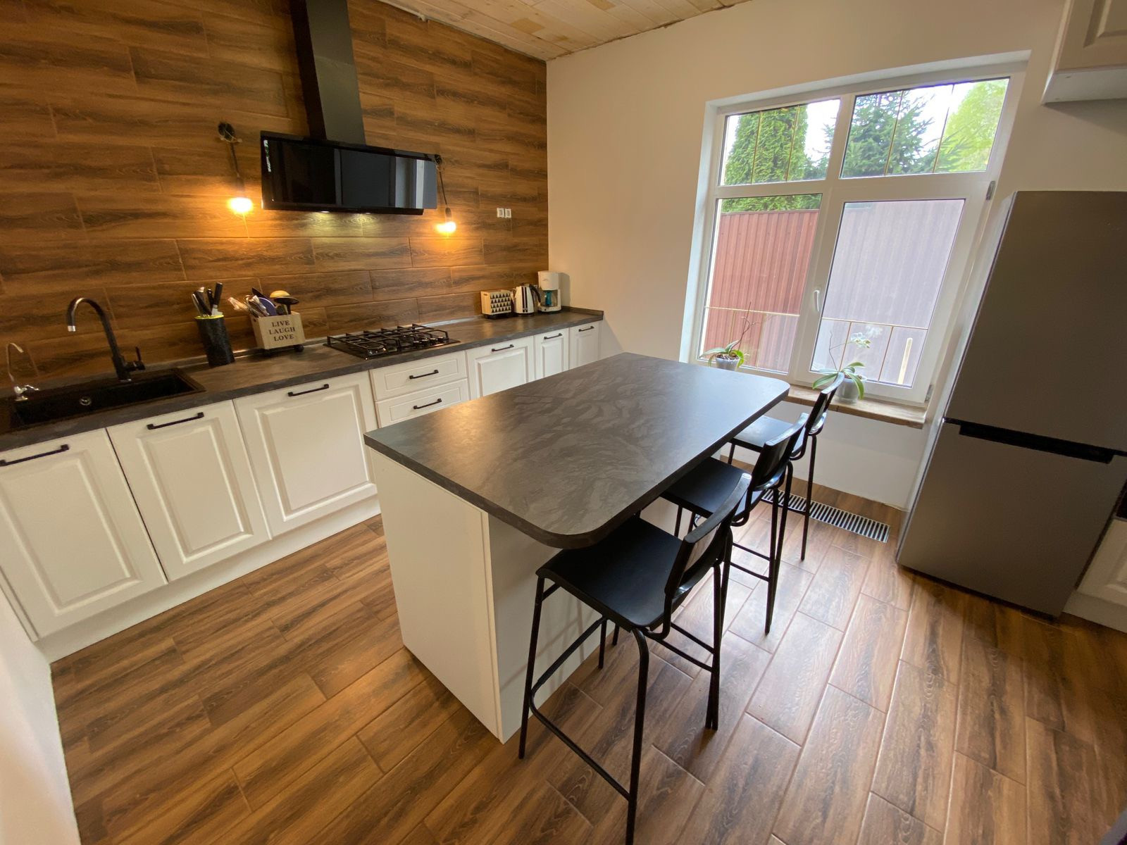 -1 этаж: кухня, гостиная, сан узел, прихожая,