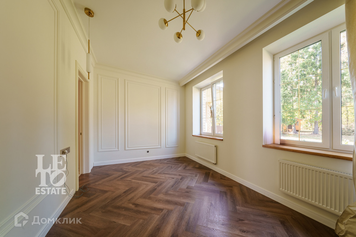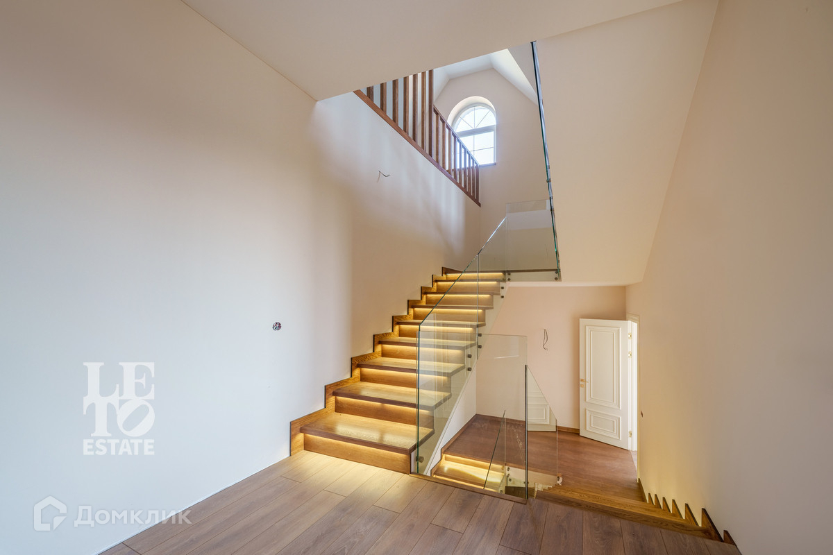 Внутренняя отделка выполнена в стиле "неоклассика". Крупноформатный керамогранит в санузлах, дубовая лестница с подсветкой и стеклянными перилами - все эти детали придают дому особую привлекательность. В процессе ремонта использовались только качественные и дорогостоящие материалы.