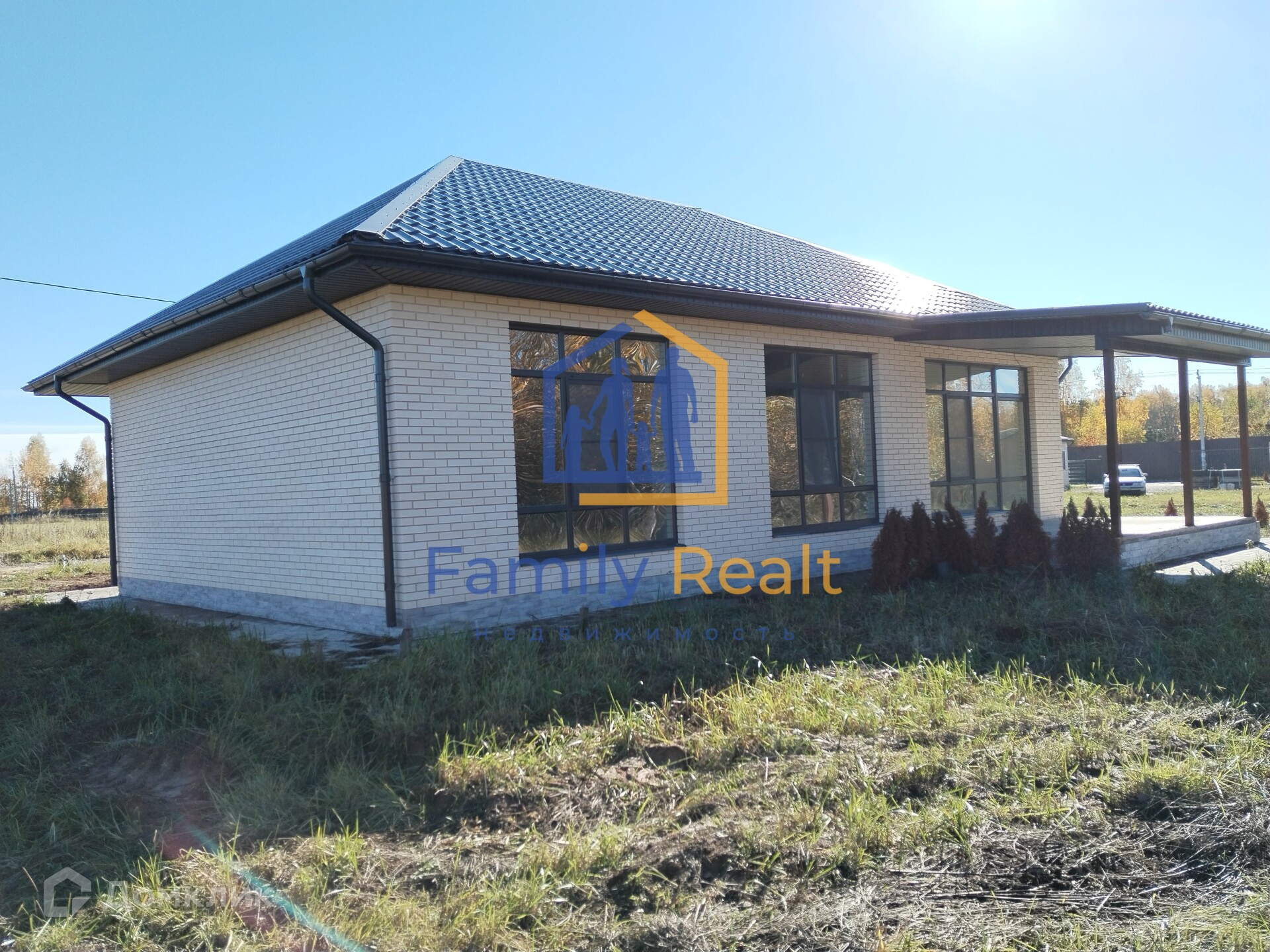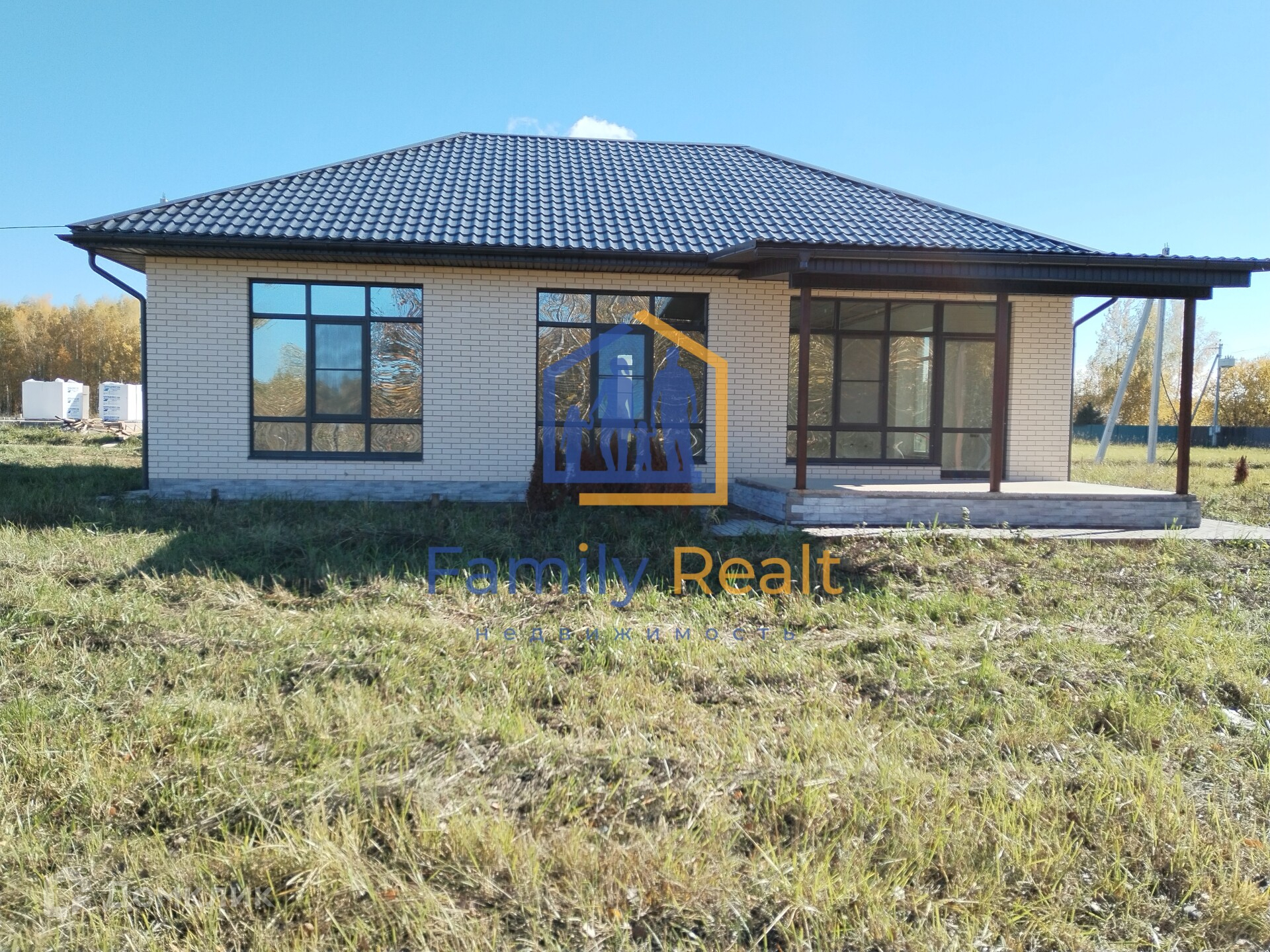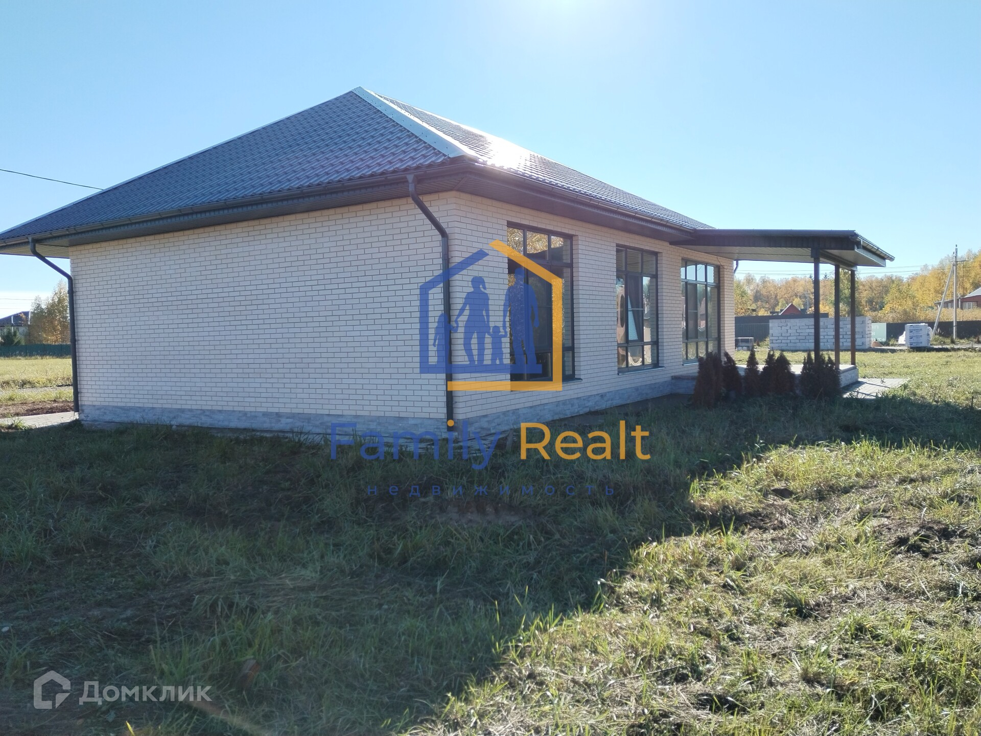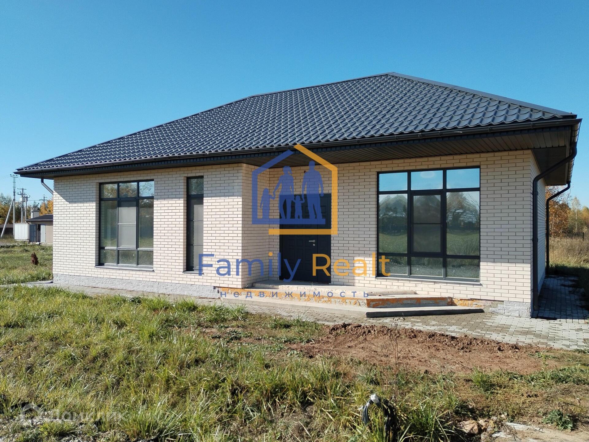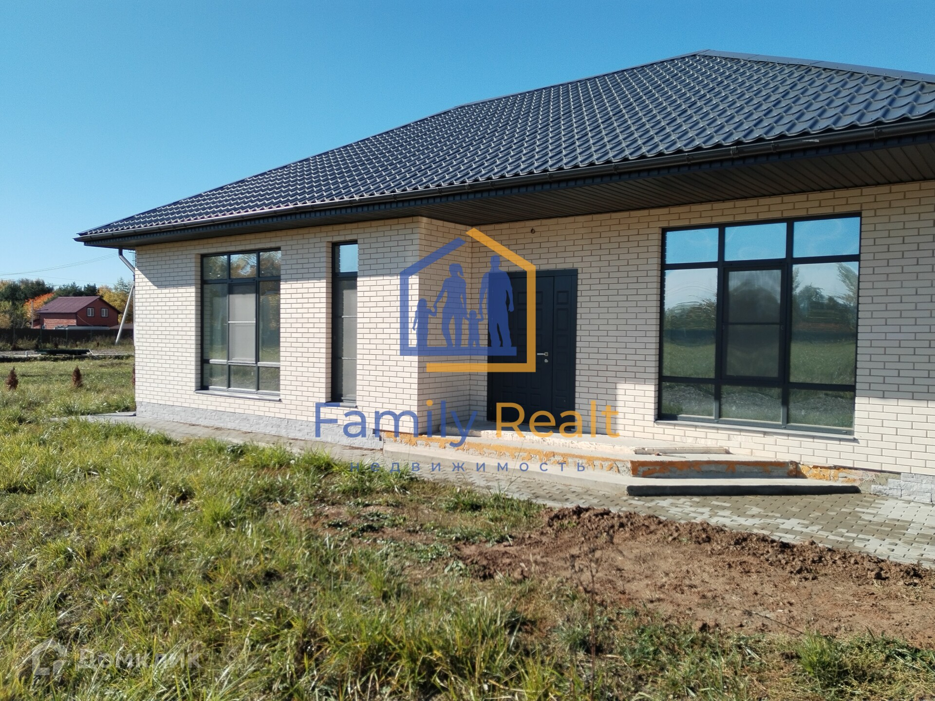 Дом одноэтажный, 130 кв.м. новый, выполнен из газобетона, облицован кирпичом, фундамент свайно-ростверковый, армированный на монолитной плите, отделка white box.
