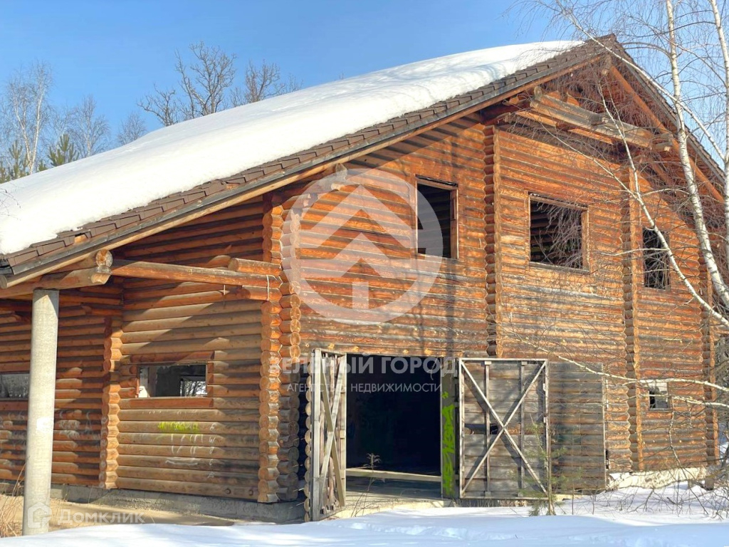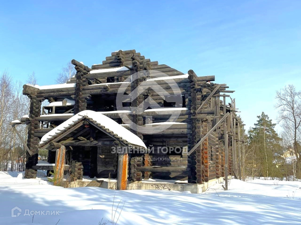 На участке 2 не достроенных дома. «Темный» из кедра, диаметров 370.  «Светлый» из сосны, диаметром 240. Построены в стиле русского зодчества.