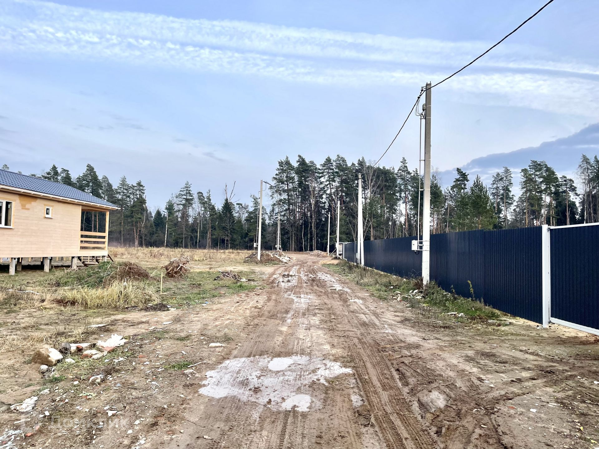 Новый перспективный район деревни, идёт активная застройка. Дороги в поселке асфальтированы, подъезд к участку пока грунтовый, в ближайшее время запланирована отсылка строительным боем (уже завезен по периметру, в дальнейшем будет отсыпка шебнем).