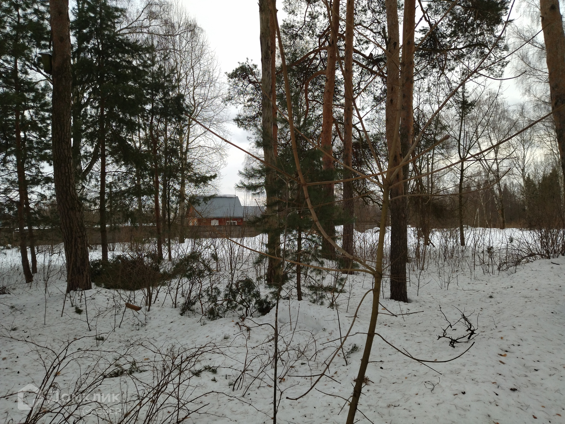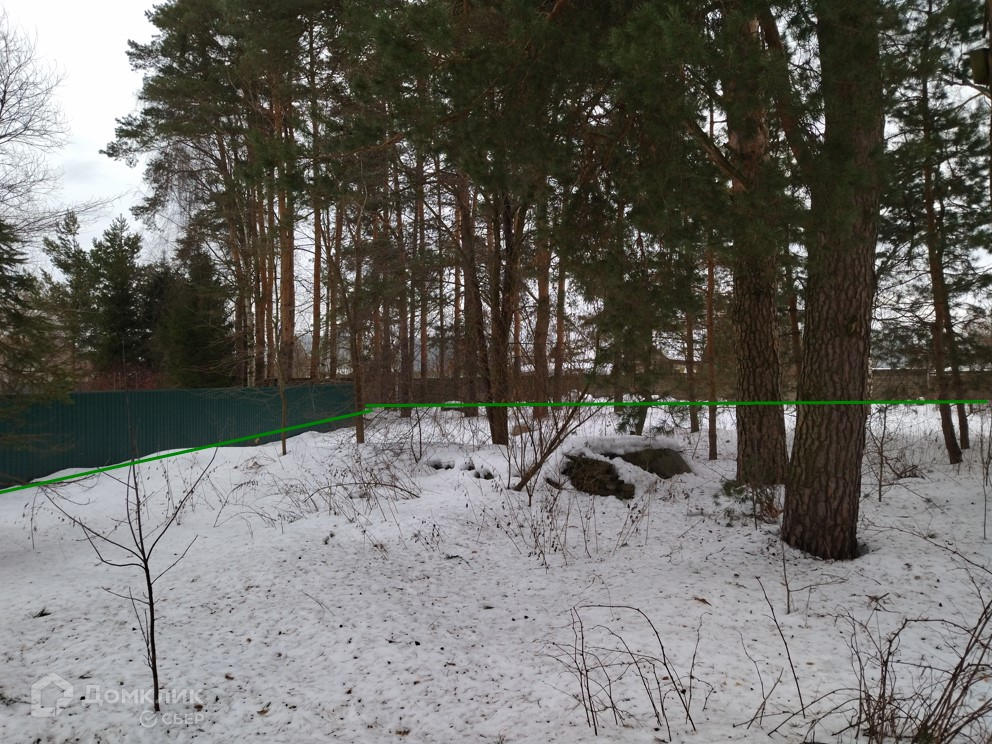 В северной половине участка растут высокие сосны! южная часть участка свободна для строительства дома.