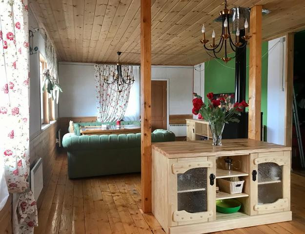 ВНУТРЕННЯЯ ОТДЕЛКА ДОМА: стены вагонка и OSВ,обои под покраску. ПОТОЛОК: вагонка во всем доме.В доме два выхода на 1м этаже: вход в дом; и выход на террасу и хоз.блок. На 2-ом этаже (мансардном) выход на балкон, размер балок 3х3.
