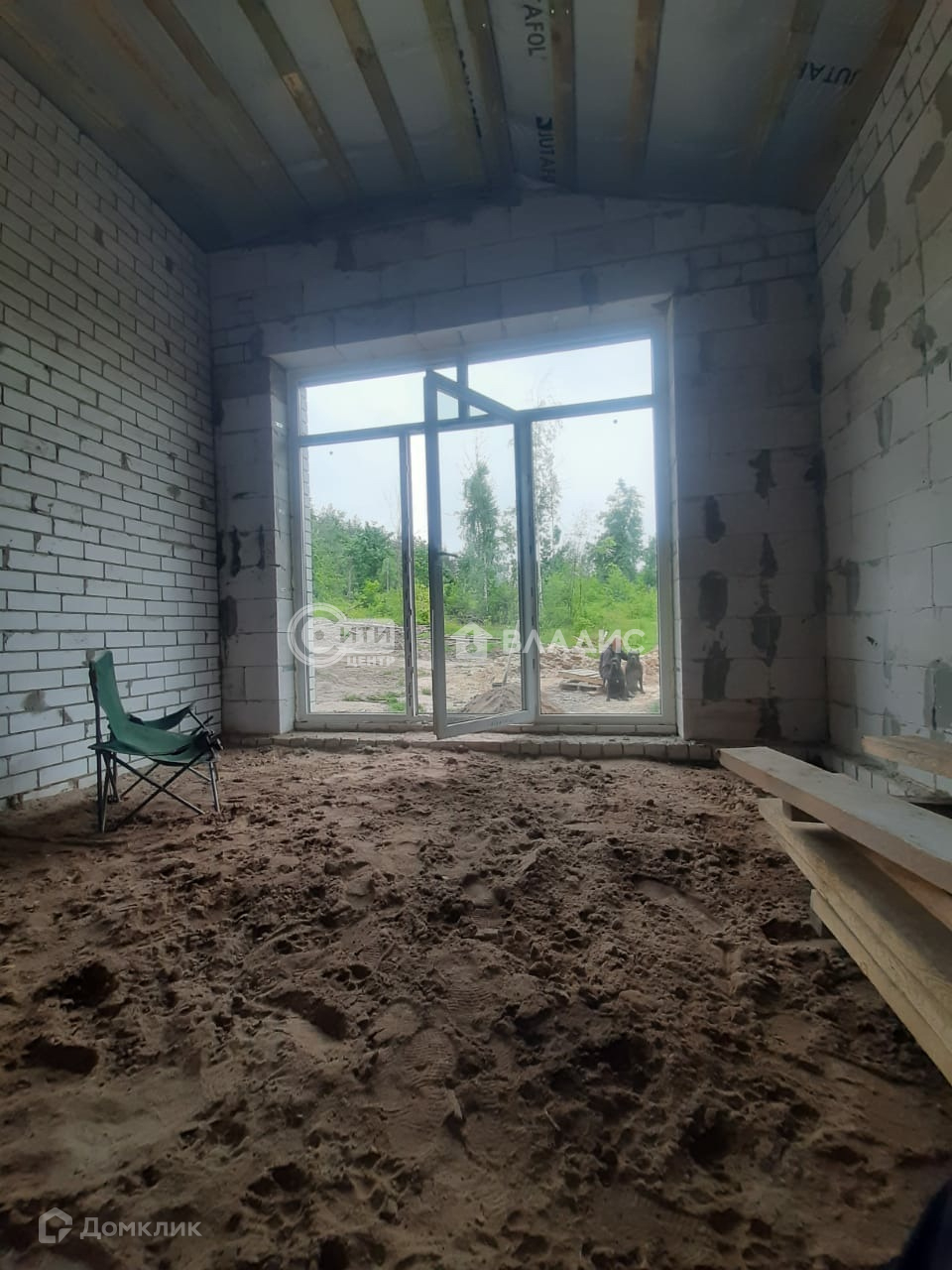 Стены-газосиликат и облицов.кирпич белый'внутри - штукатурка'стяжка'потолки разноуровневые от 3м до 3.5м.