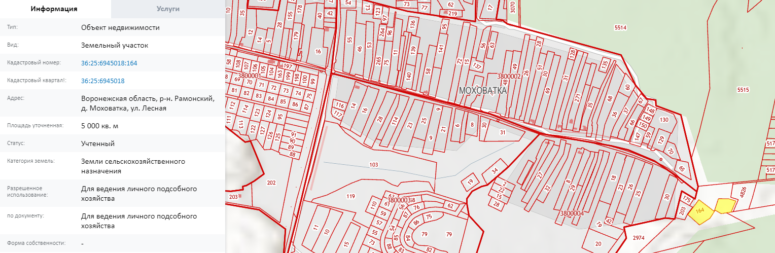 Кадастровый номер: 36:25:6945018:164