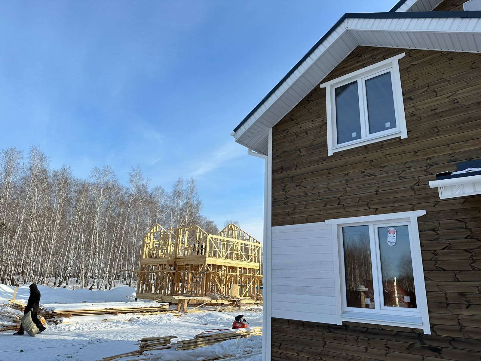 Двухэтажный , деревянный дом с панорамным остеклением, построенный по классической каркасной технологии для круглогодичного проживания. ОТЛИЧНО ДЕРЖИТ ТЕПЛО В СИЛЬНЫЕ МОРОЗЫ.