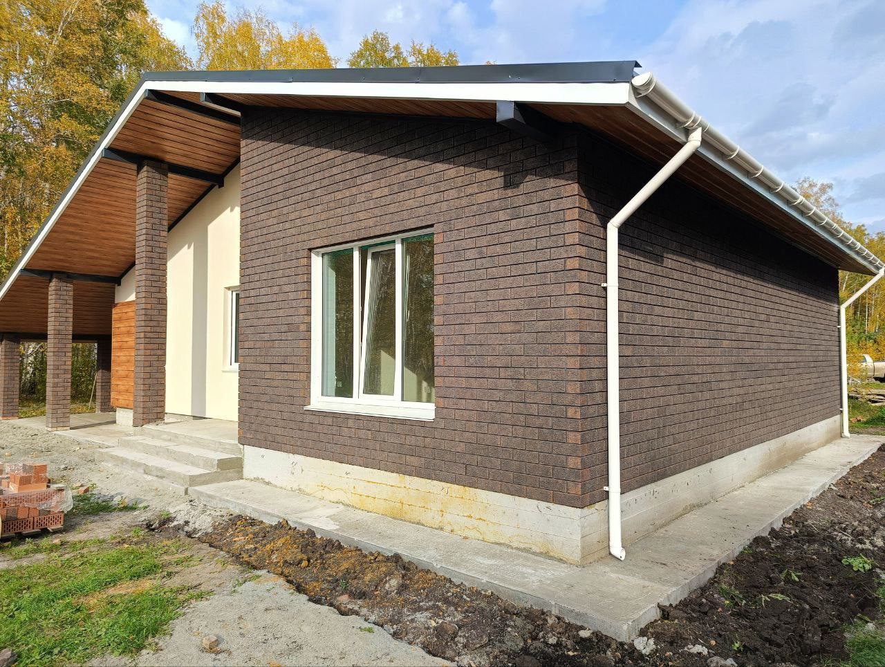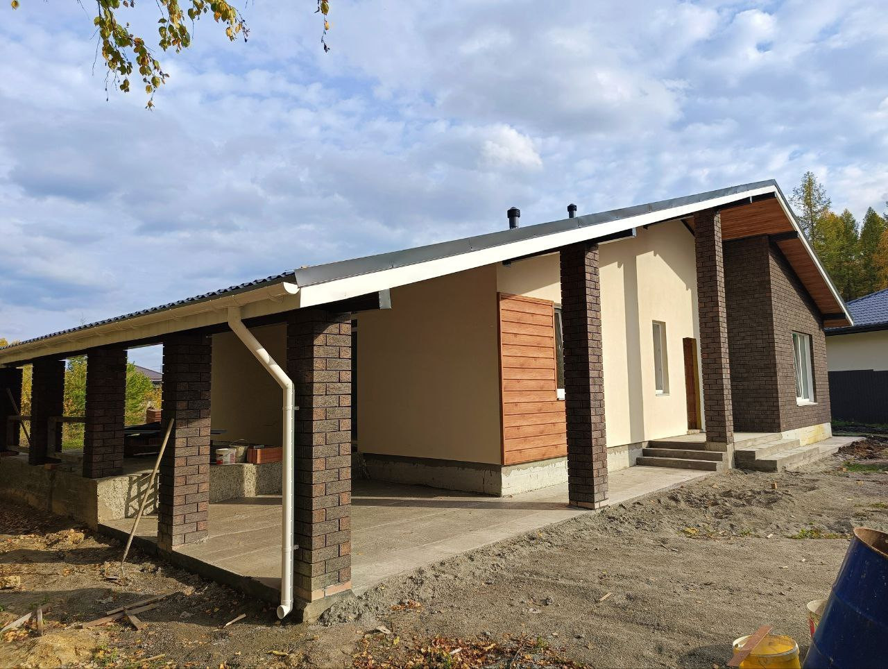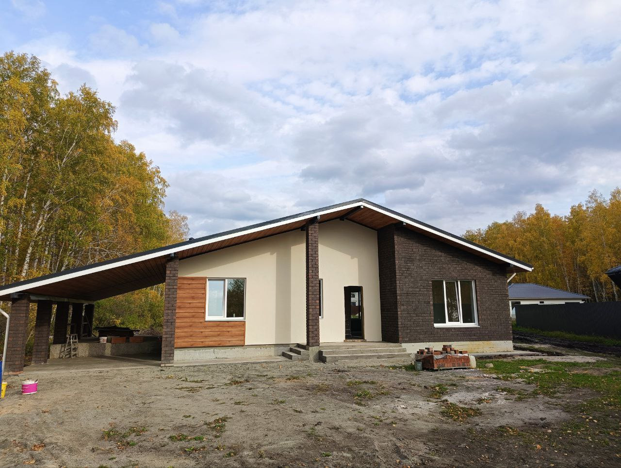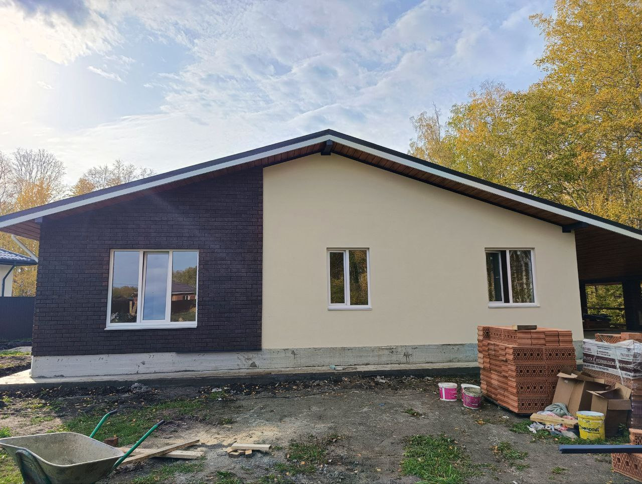 Качественная застройка, готовность дома 1 месяц! Стены - керамоблок 250мм, утеплитель 100 мм, фасад комбинированный - декоративная штукатурка, панели, кирпич.