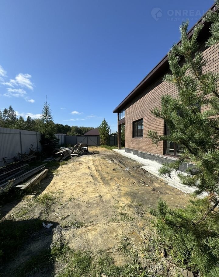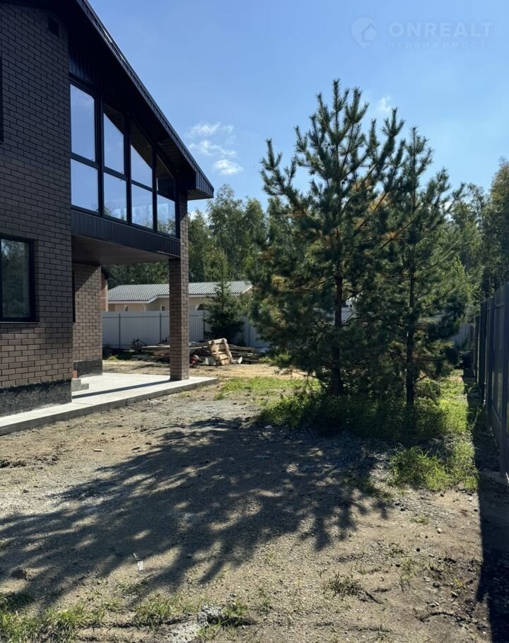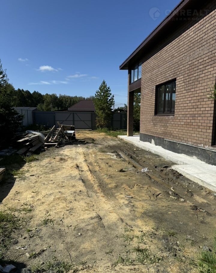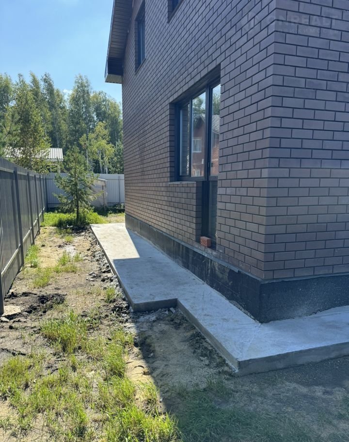 Площадка у дома может быть выложена плиткой. Сохранены деревья на участке.