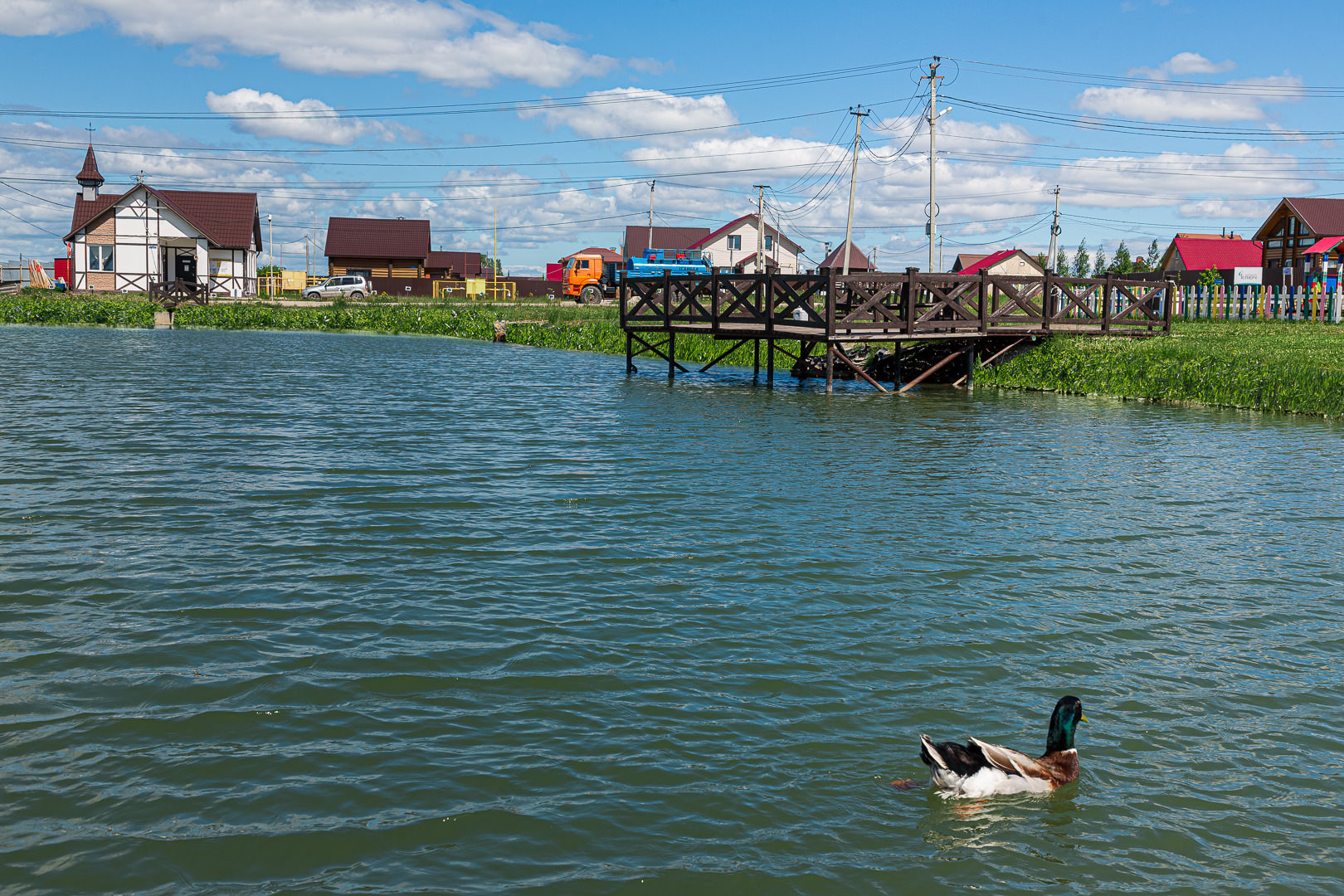 Въезд в поселок охраняемый, КПП, дороги зимой чистят, есть детская и спортивные площадки, декоративный пруд с утками и карпами. Школьный автобус забирает детей с территории комплекса. В шаговой доступности магазин "Пятерочка".