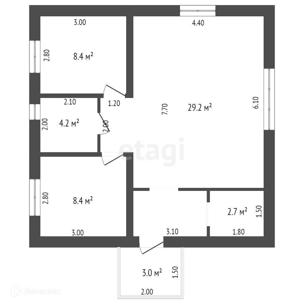 - две небольшие спальни по 8,4 кв.м. и кухня-гостиная 27 кв.м., совмещенный санузел 4,2 кв.м., котельная и прихожая с выделенной зоной под гардероб.