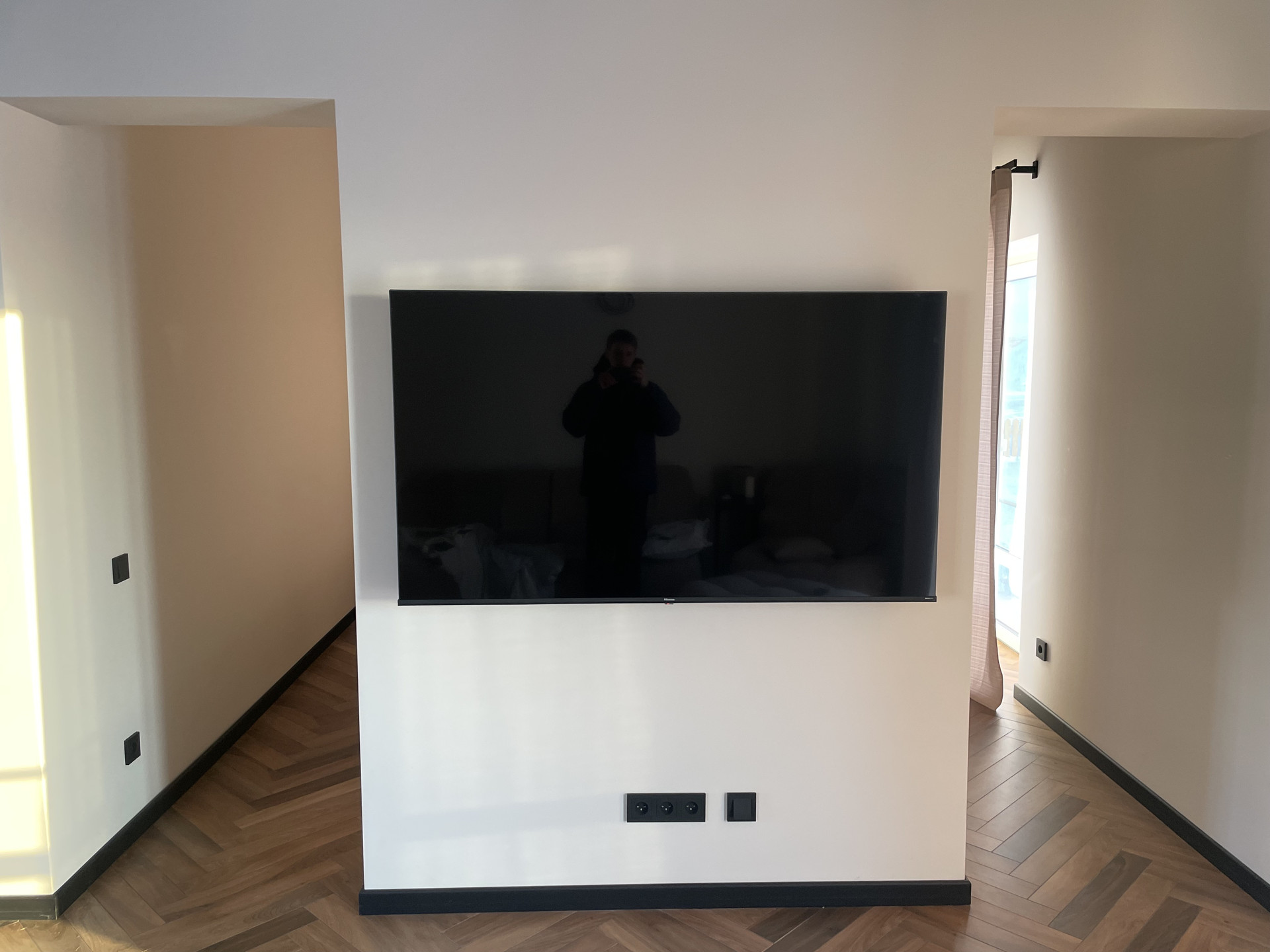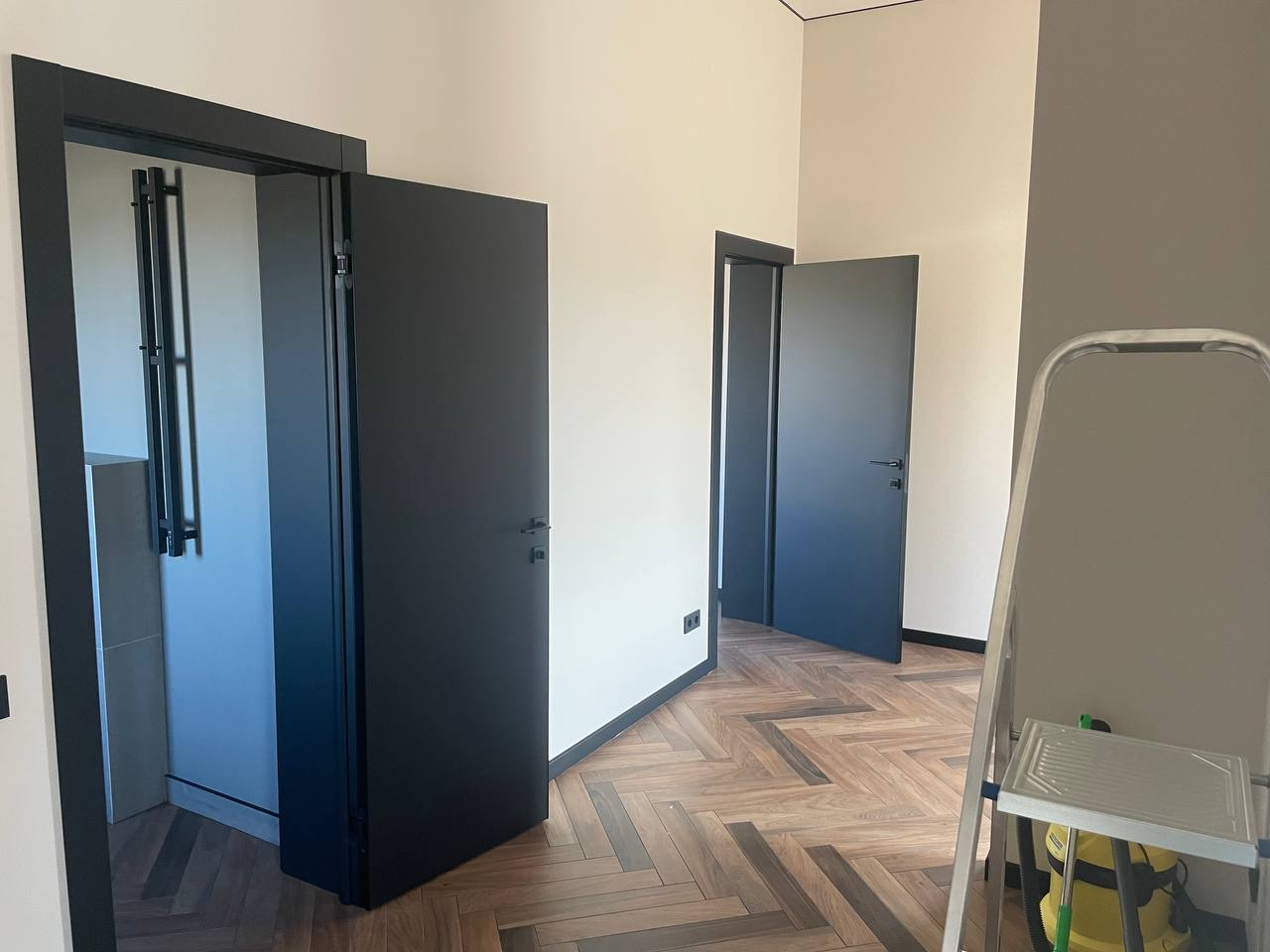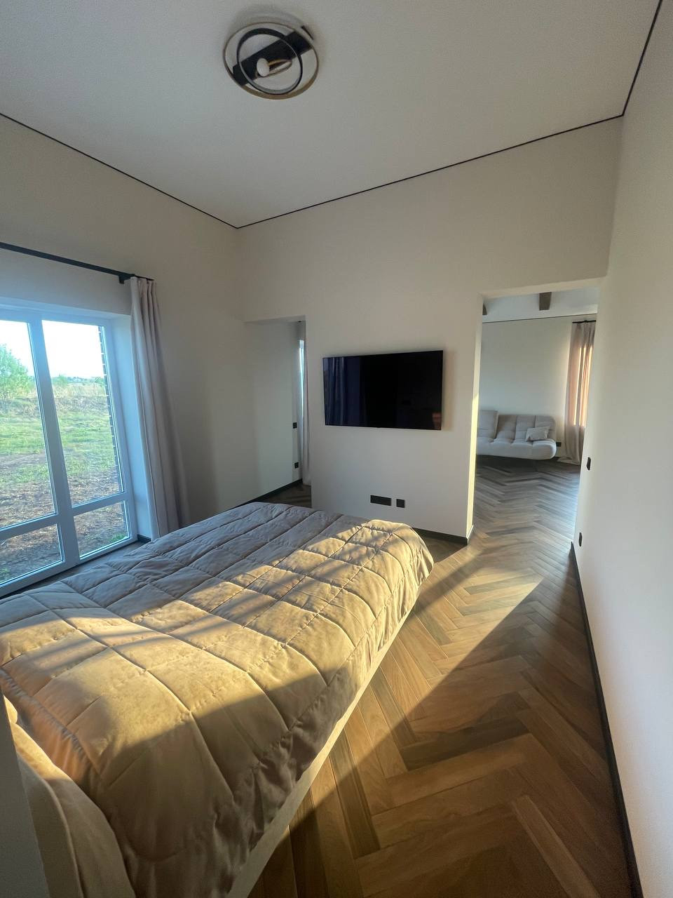 Дом выполнен в скандинавском стиле, нету личных следов проживания, вся отделка под покраску (штукатурка, шпаклевка, стеклохолст и т. д.), финская краска, никаких трещин после двух зим, деревянные интерьерные балки, деревянные подоконники. Керамогранит высокого качества по всему дому, уложен елочкой. Кухня с фасадами, покрашены с двух сторон, немецкая фурнитура, столешница из искусственного камня. Двери, дверные коробки, откосы и плинтуса выполнены в один цвет от одного производителя. Вся электрика немецкая, больше 40 розеток по всему дому, есть скрытые розетки в стенах для hdmi кабелей. По всему дому можно выбирать температуру света. Реализована удобная система хранения. Также предусмотрены выводы под кондиционер и кухонный остров.