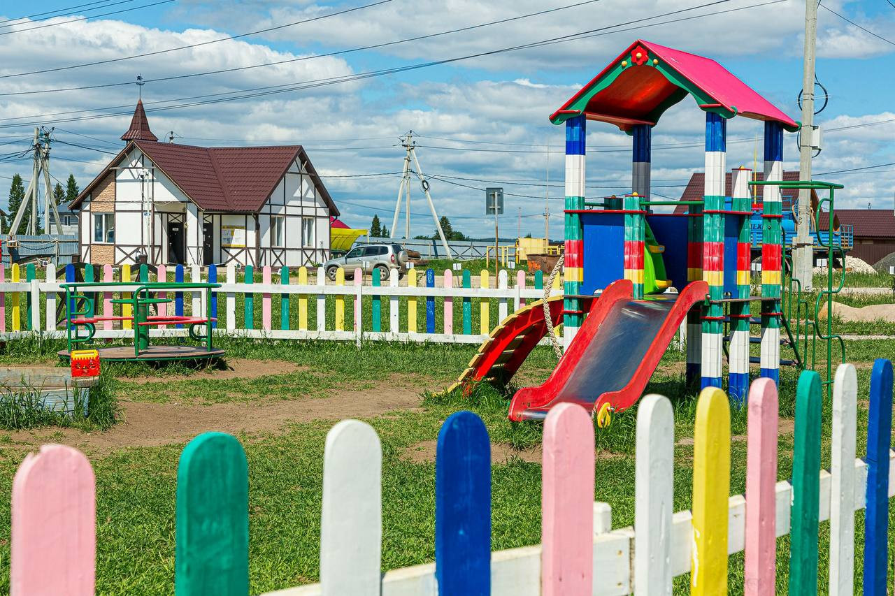 Внутри поселка организованна инфраструктура : искусственный пруд, озелененная территория , детские площадки. Организованна круглогодичная охрана территории.