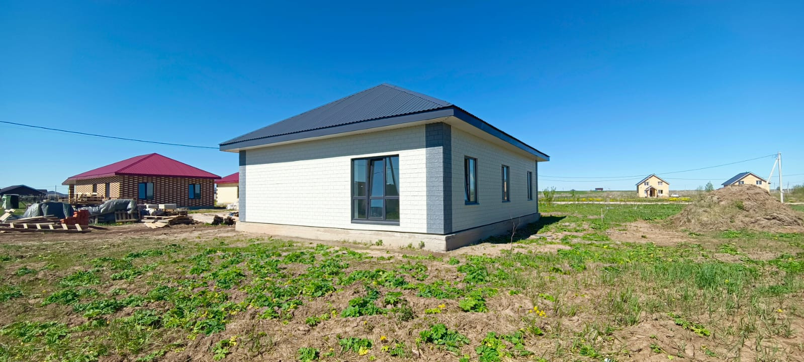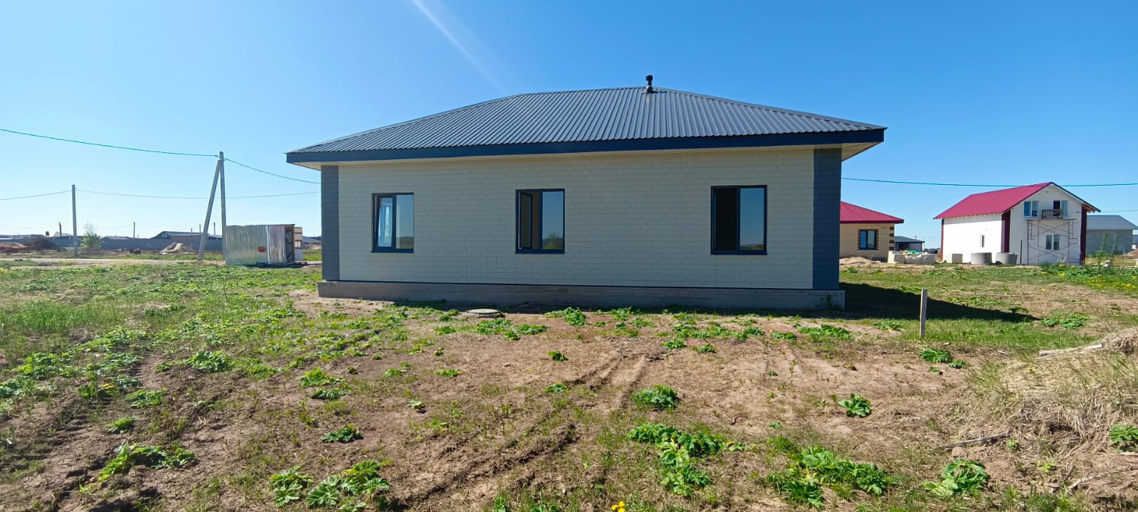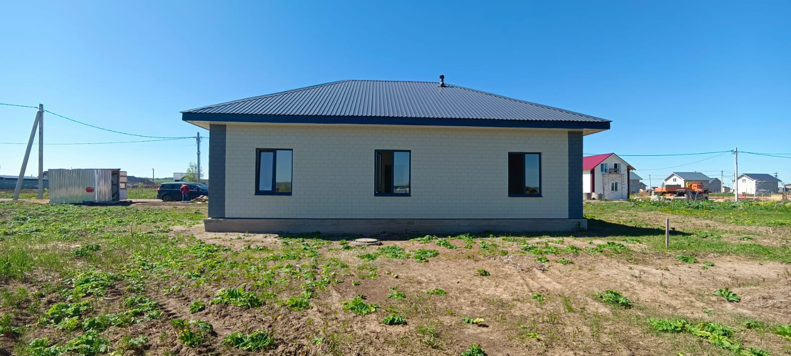 Из коммуникаций есть всё: эл-во 390 Вт, вода (скважина 38 м) и выгребная яма, улица газифицирована.