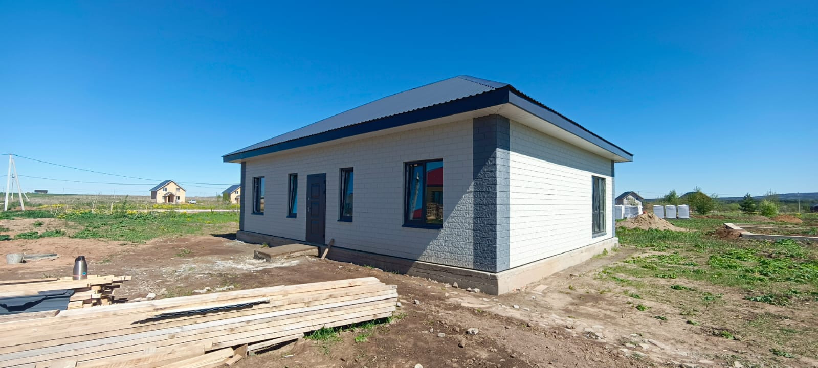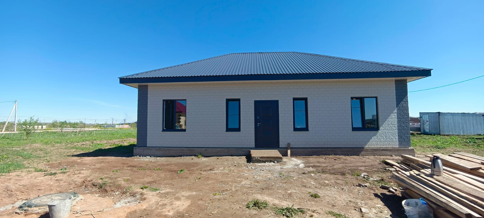 Очень комфортная планировка: три спальни, кухня с гостиной (студия) с выходом на задний двор, сан узел и котельная.
