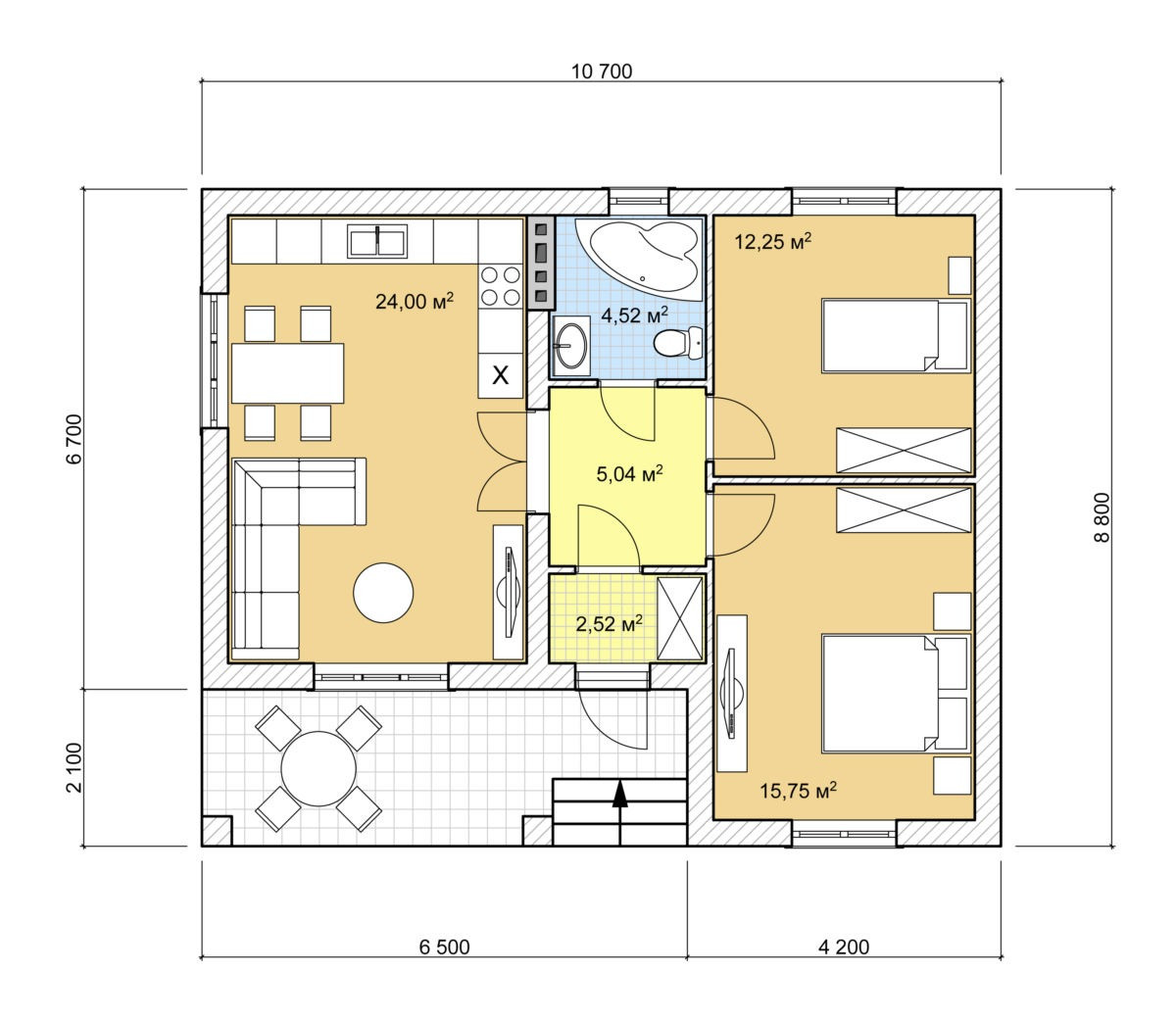 Общая площадь 64 м2