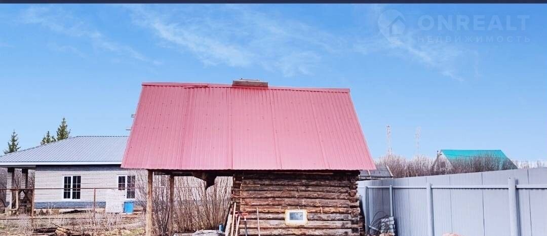 Участок: баня из бревна, гараж (незавершен).