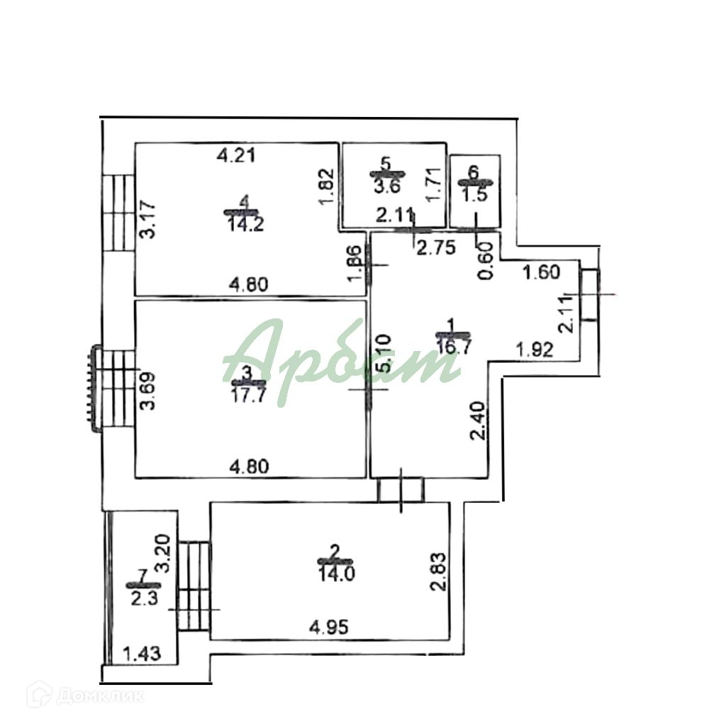 Общая площадь 67.7 м2