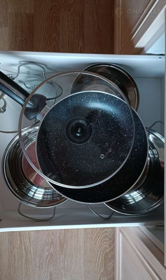Интернет, wi-fi, большой телевизор, набор посуды, набор кастрюль, сковородка, кофеварка, соковыжималка для цитрусовых, тостер.